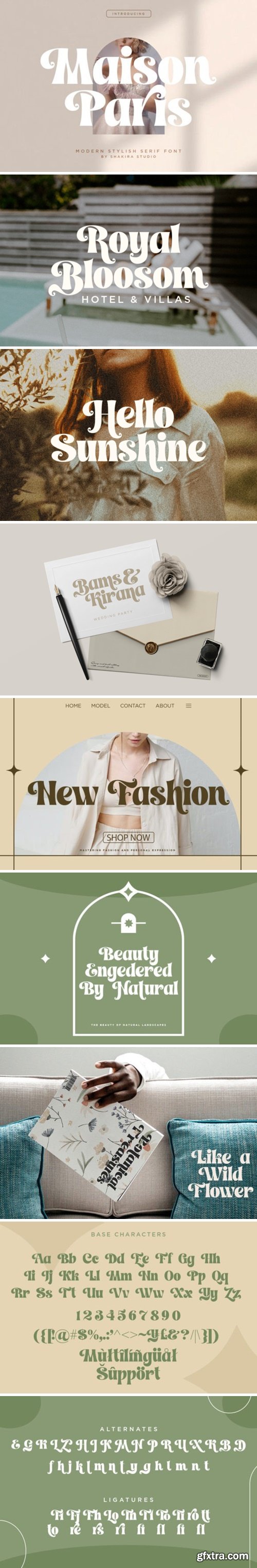 Maison Paris is the font that defines contemporary style, making it an absolute must-have in today’s design scene. This font effortlessly marries modern chic with timeless sophistication, embodying the very essence of what’s trending now in the world of typography. With a versatility that knows no bounds, Maison Paris is your key to creating stunning designs that demand attention in today’s competitive landscape. Whether you’re crafting a high-end brand’s logo, a cutting-edge editorial layout, or a minimalist wedding invitation, this font adds an element of tasteful extravagance that’s currently sought after. Don’t miss the chance to infuse your designs with the most sought-after modern stylish serif font of the moment. Maison Paris is your ticket to ensuring your projects are impeccably current and stylish. Embrace the future of design today with Maison Paris! This font is PUA encoded which means you can access all of the amazing glyphs and ligatures with ease!