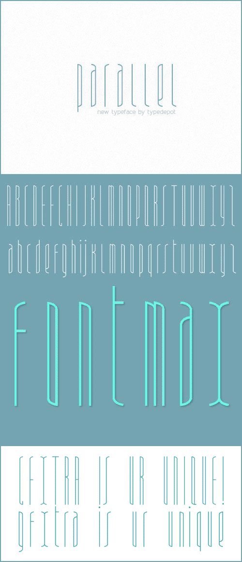 - Parallel is unique quite thin and pretty “expressive” typeface, designed in order to serve the fashion industry. It also works pretty well as a typeface for print, headlines and identity issues.