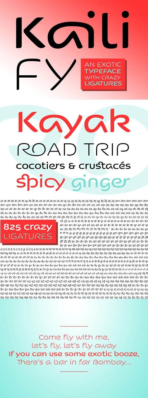 Kaili FY, an exotic typeface with crazy ligatures. Inspired by Indian scripts,