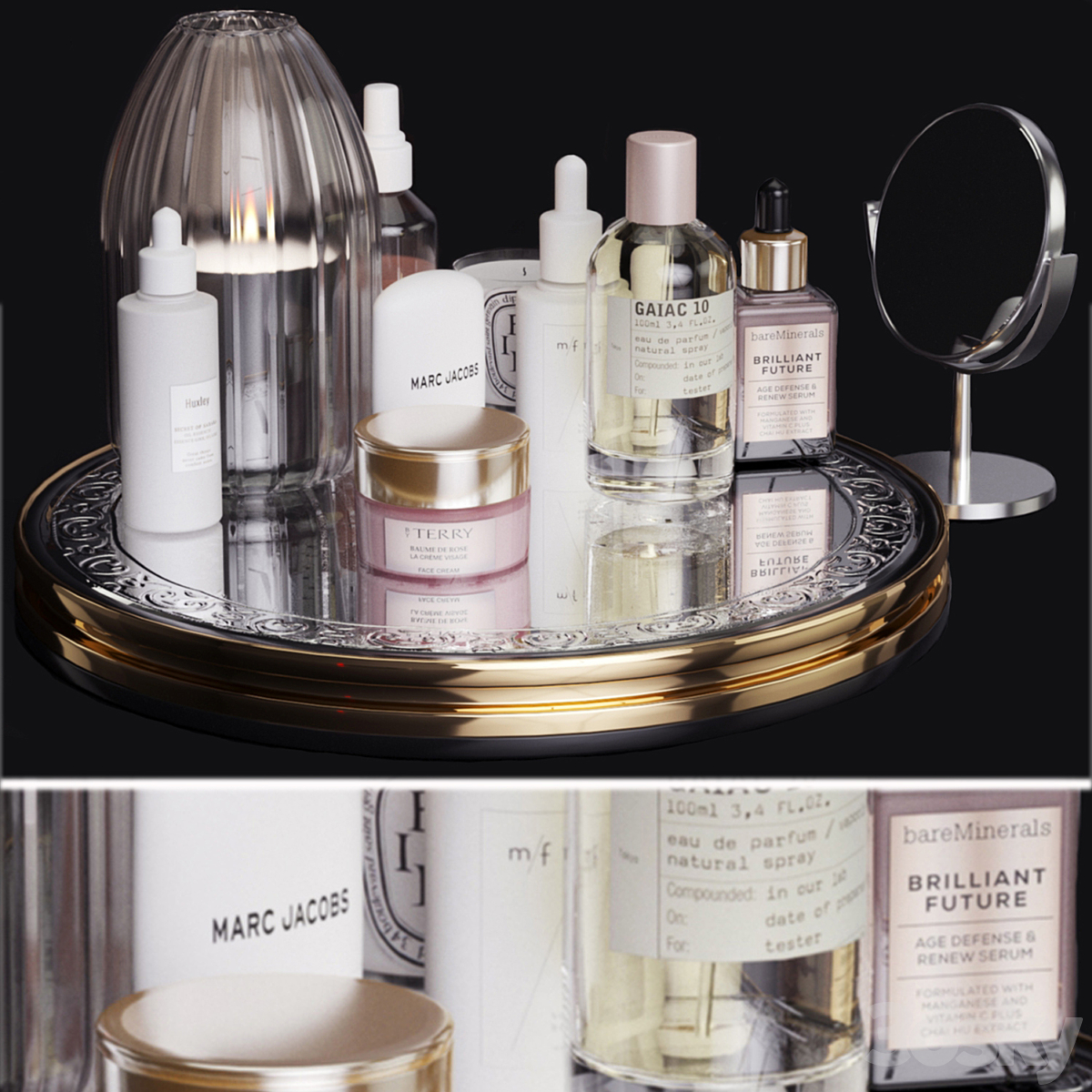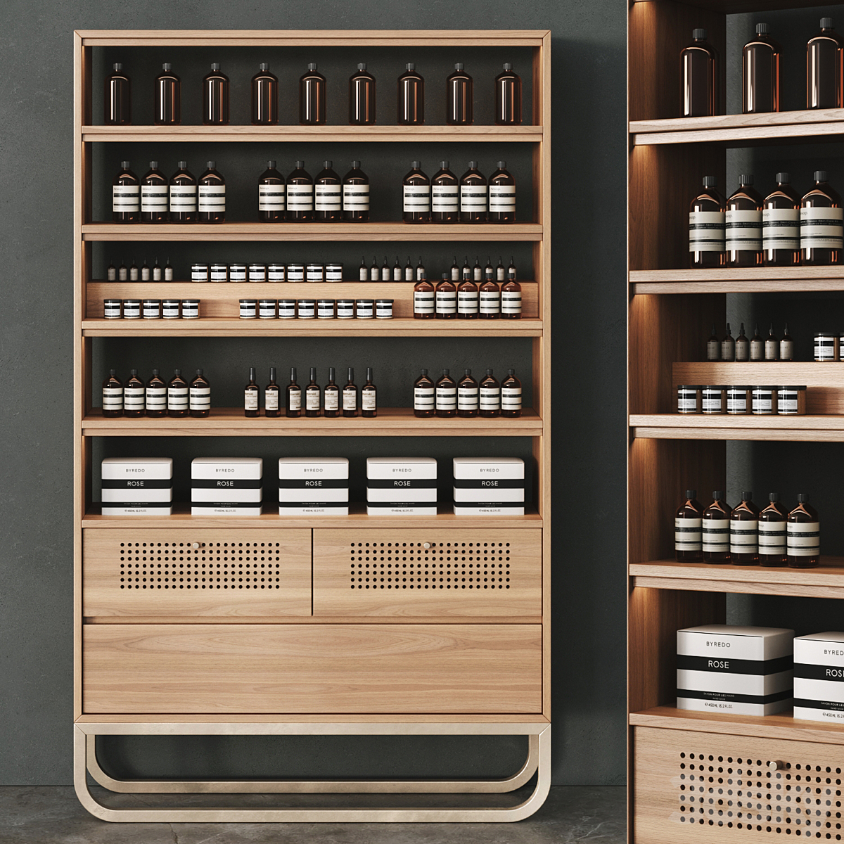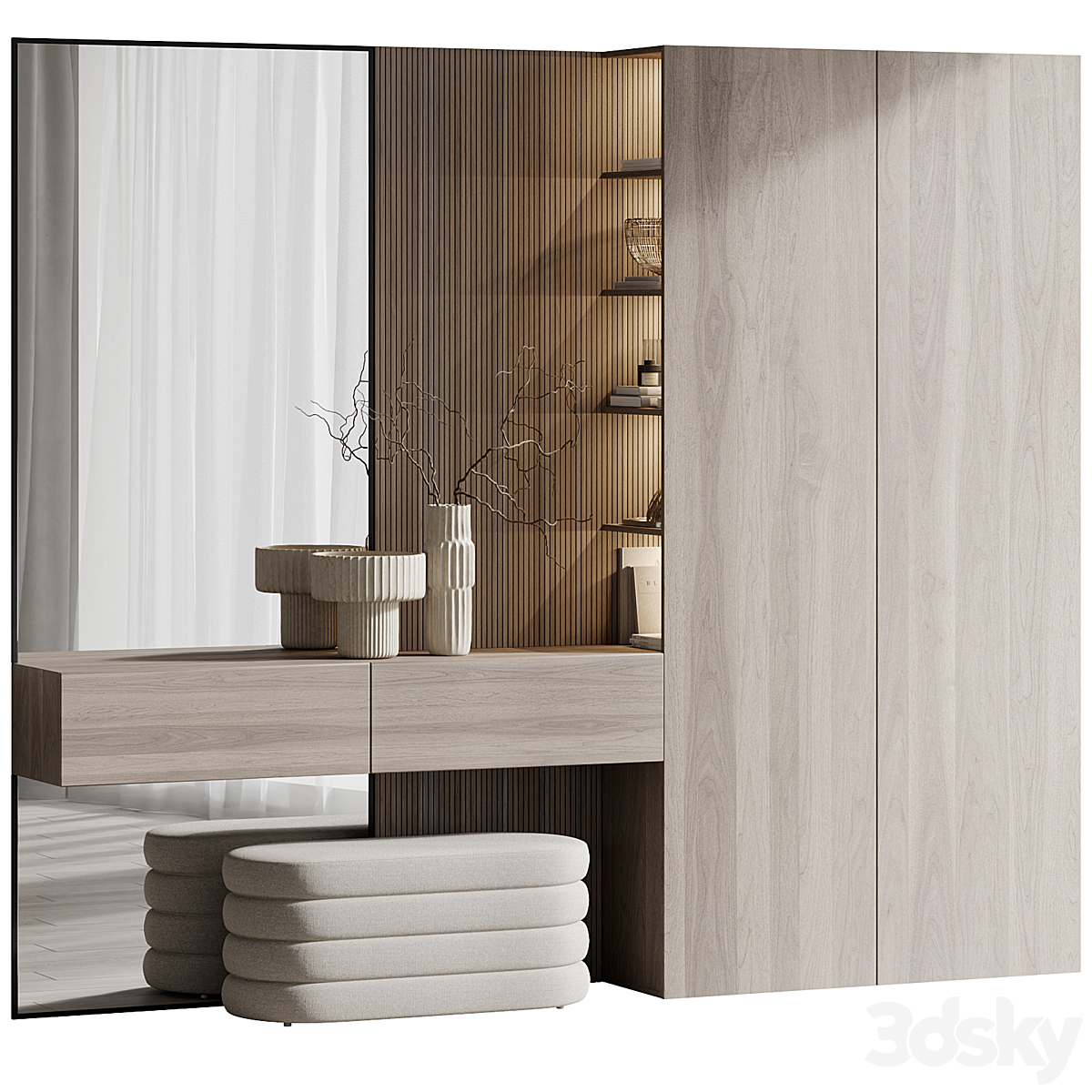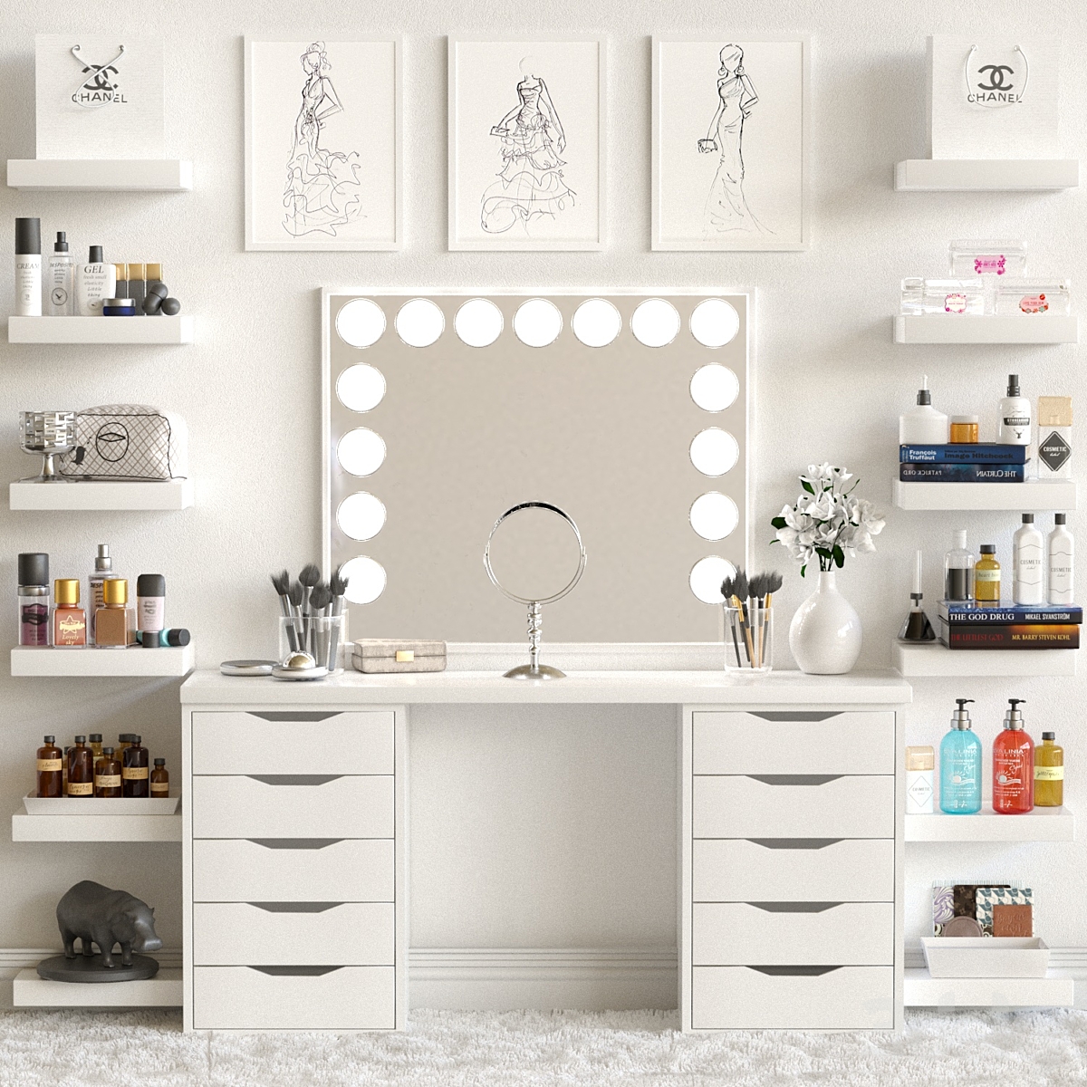 Dressing table and shelves with cosmetics. Makeup 3