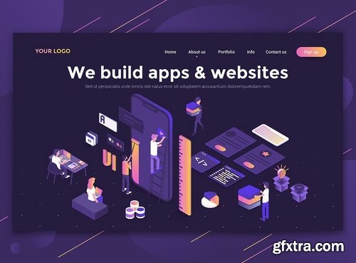 Modern flat design isometric concept on various topics for website and mobile website. Landing page template, dark theme. Easy to edit and customize. Vector illustration