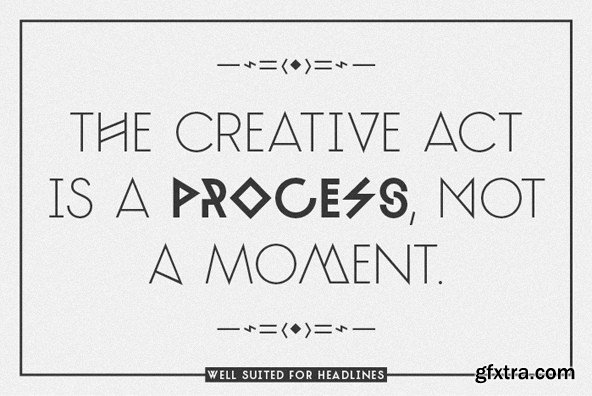 TJ Evolette A is unique, customizable, experimental, fashionable and clean. The geometric constructed uppercase grotesque display font family of 21 styles, features seven weights, one basic glyph set, two integrated extravagant stylistic sets for the whole alphabet and some astonishing special characters as well. TJ Evolette A was designed in 2011 by Timo Titzmann and Jakob Runge. In 2014 they revisited the typeface with new characters, border language support, runic figures, improved kerning and a better weight gradation with heavier weights. The typeface offers numerous combination possibilities between the basic glyph set and the two stylistic sets. The stylistic sets are alternate alphabets – interpretations of Art Deco mixed with straight lined shapes of ancient runes. This variety encourages unusual and extroverted creation in editorial and poster design. In all weights all common character sets of Central, Eastern and Western Europe are supported. Best use of alternate glyphs via OpenType layout features. To use the multifarious typeface even without support of OpenType Features (like for web usage) we recommend TJ Evolette A Web. This version offers a predefined mix of all glyphs. Feature Summary (*new in 2014): – 7 weights: Hairline, Thin, ExtraLight, Light, Normal, Bold and Black* – 2 Stylistic Sets with alternates for every letter – 1 Stylistic Set to mockup the subsetted TJ Evolette A Web – 1 set of runic alternates for the figures* and punctuation – Ancient roman figures* – Automatic fractions* – Superior and inferior figures* – Arrows* – Contextual alternates for arrows and a correct multiply between figures* – More than 600 glyphs in each weight – Extended language support* (most Latin-based scripts supported)