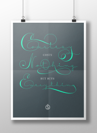 - As in Victorian times, the precious, hand-lettered look of custom stationery is back in vogue. Enter Courtesy Script, an original creation by Alejandro Paul. Courtesy captures the elegance and propriety of finely practiced Spencerian penmanship, in particular the Zanerian school. Its lowercase is notably understated, a simple monoline with very wide connections that ease readability. In the capitals, Courtesy adds variety in both the weight of the strokes, and in degrees of flourish — from merely fancy to over-the-top engrossery. Based on an alphabet found in a 19th-century penmanship journal, Ale created hundreds of additional, stylistically complementary letterforms. Alternate capitals and lowercase letters, swashed lowercase forms, and ending and ornamental swashes; numerals, punctuation, and non-English and accented characters. With virtually endless ways to customize its use, Courtesy helps designers create fluid, signature looks on stationery and invitations, book covers, fashion layouts, and packaging.