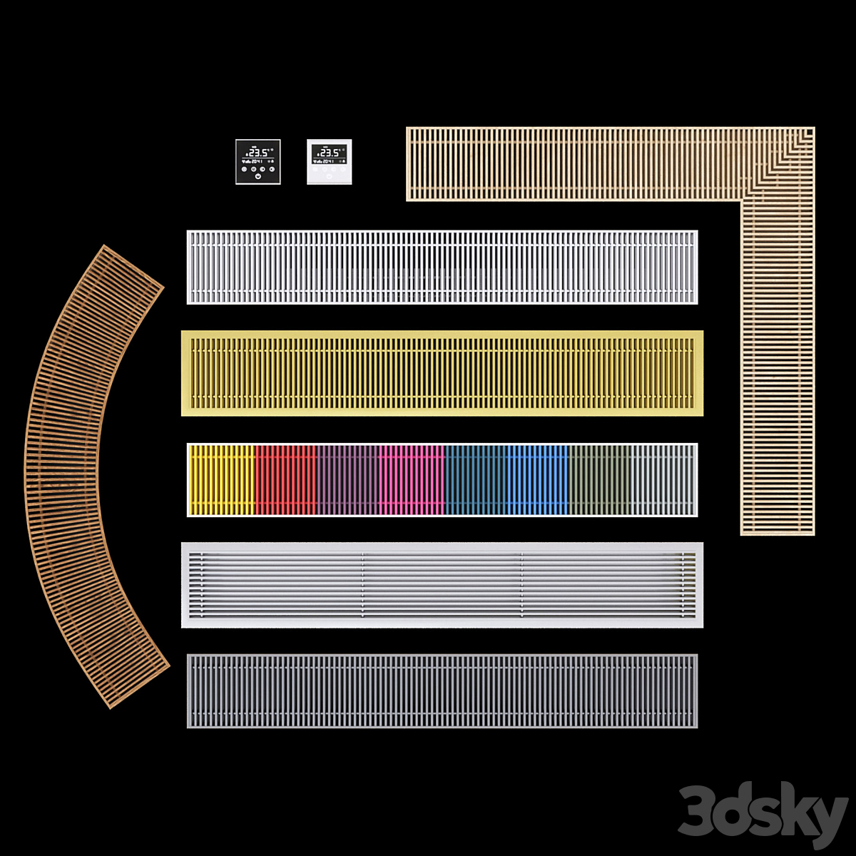 A set of water, floor convectors. 600-2000mm. 4 colors