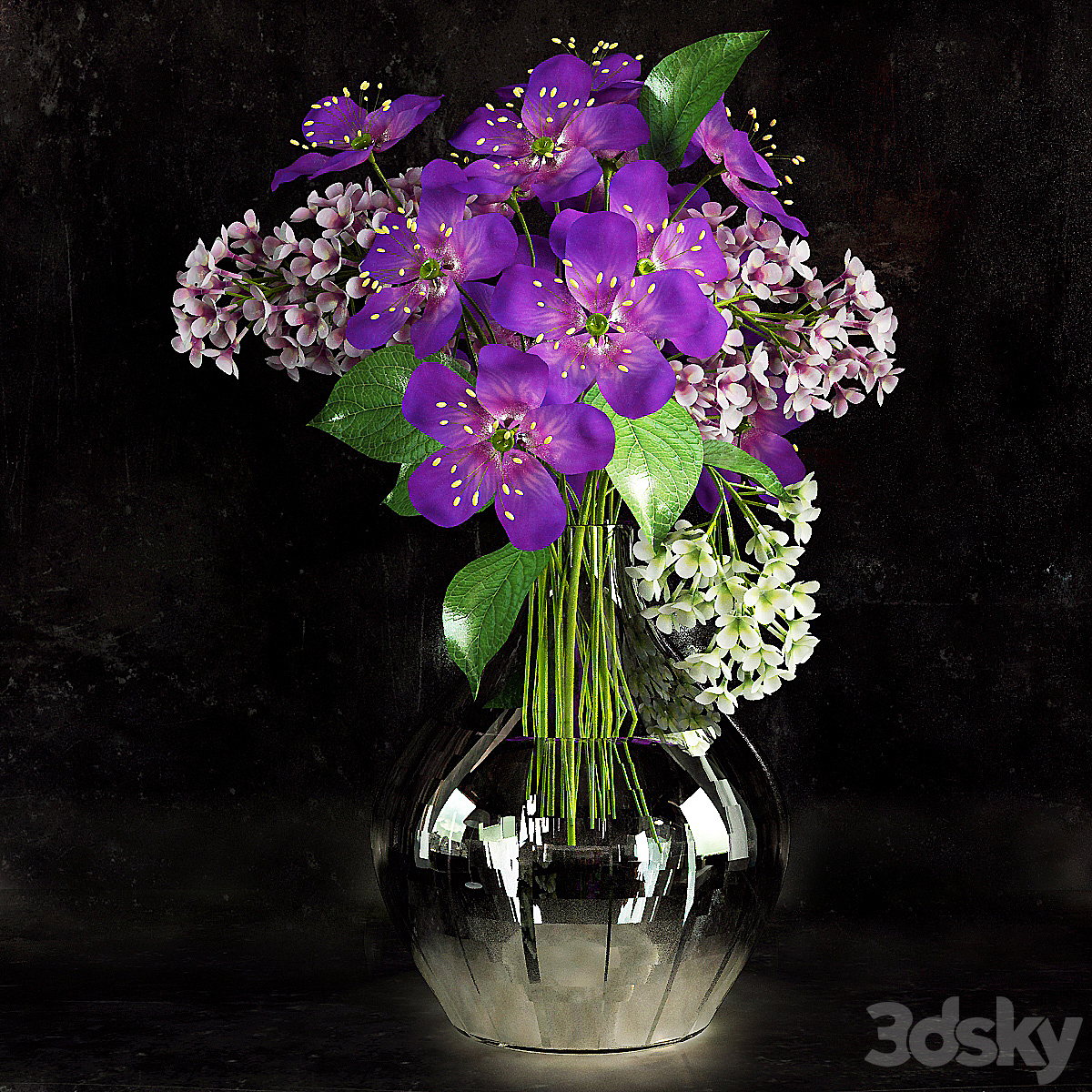 Bouquet of lilacs in a modern tall vase