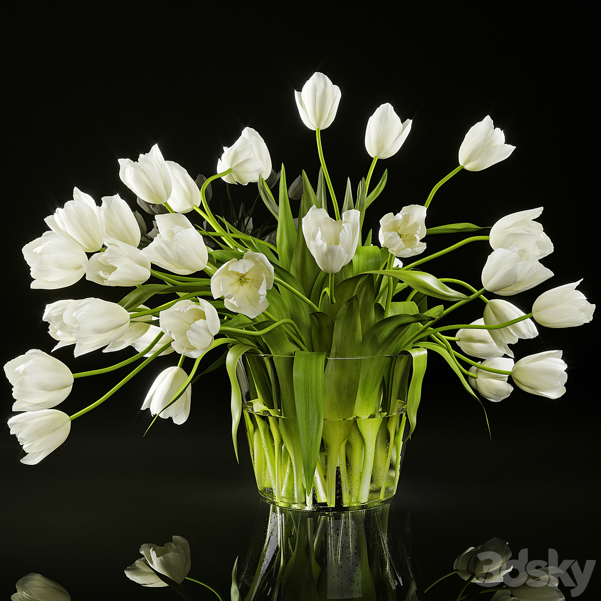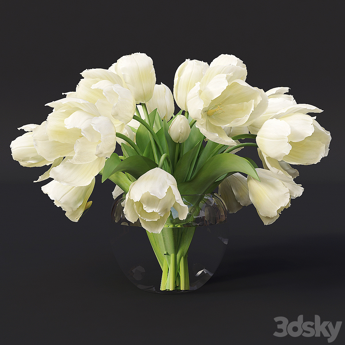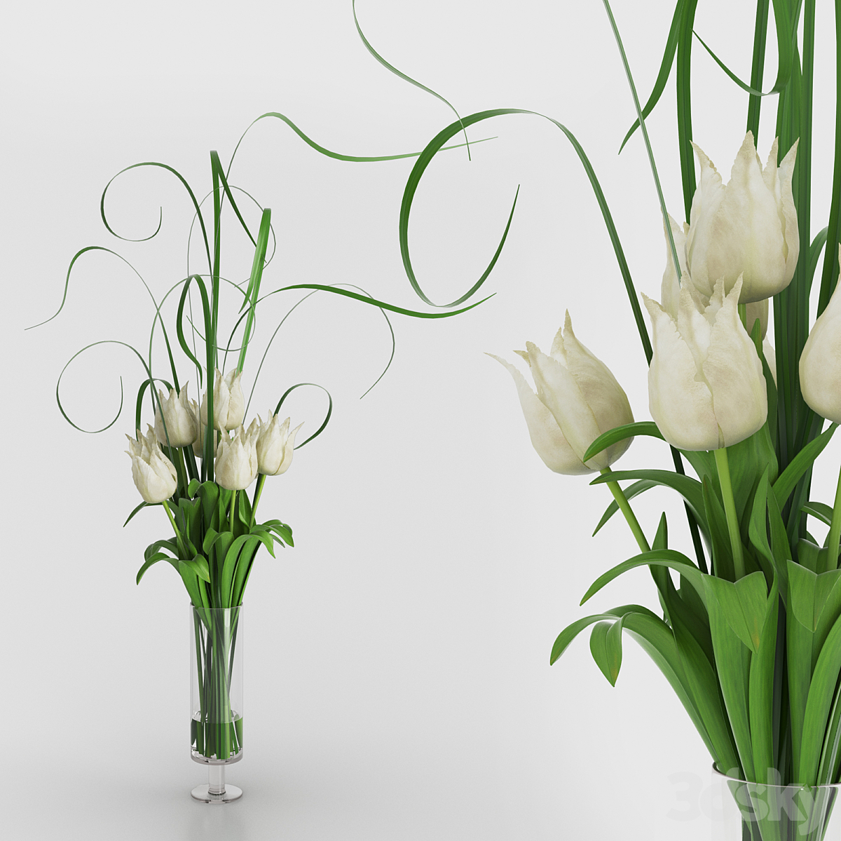Bouquet of white tulips in a white vase