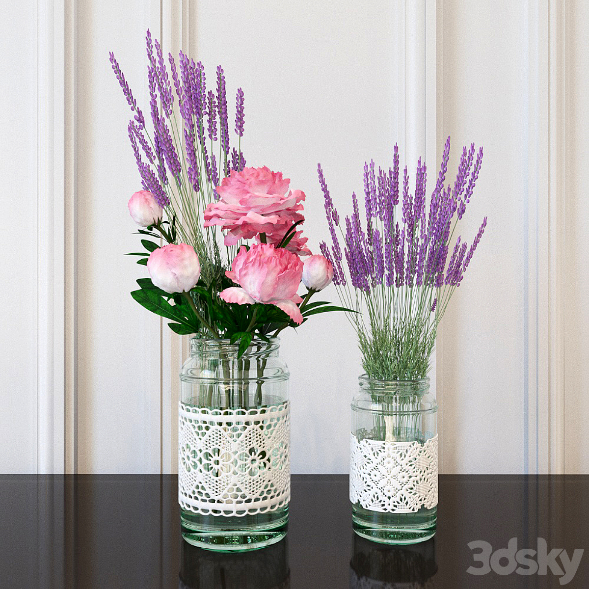Decorative set - flowers in banks / Decorative set of flowers in jar
