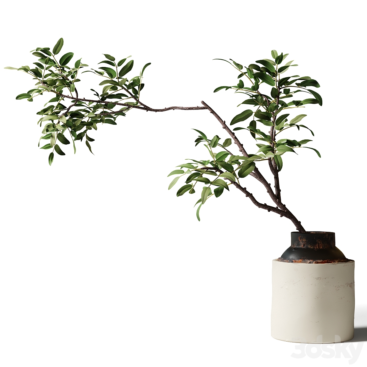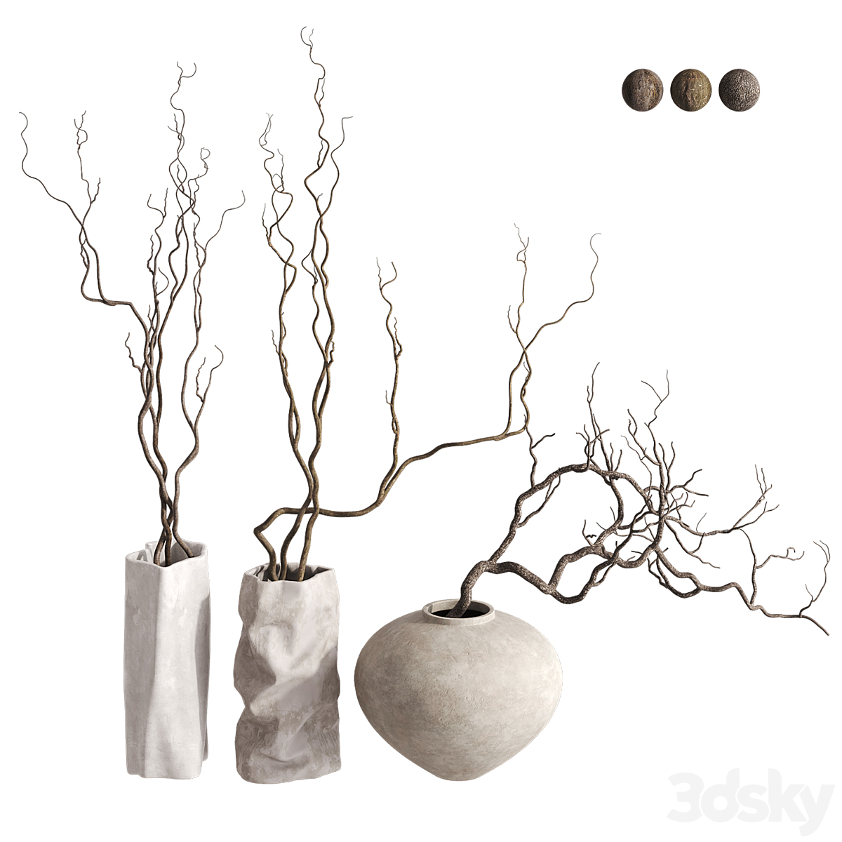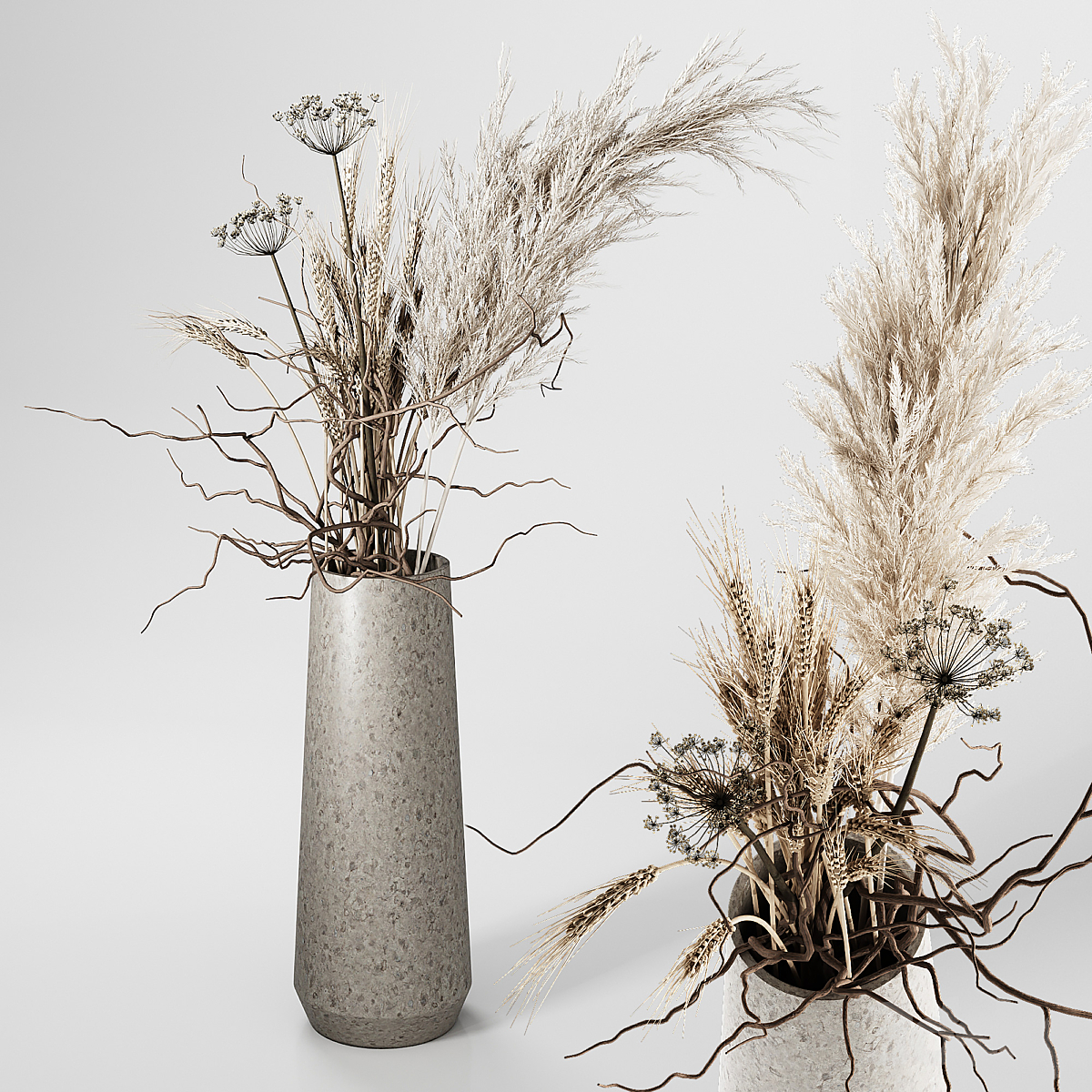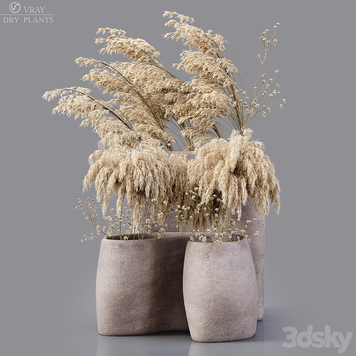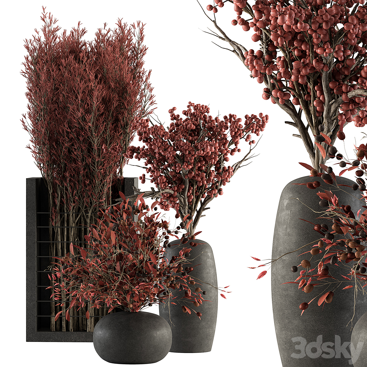 Indoor Dry Plants in rusty Concrete Pots - Set 80