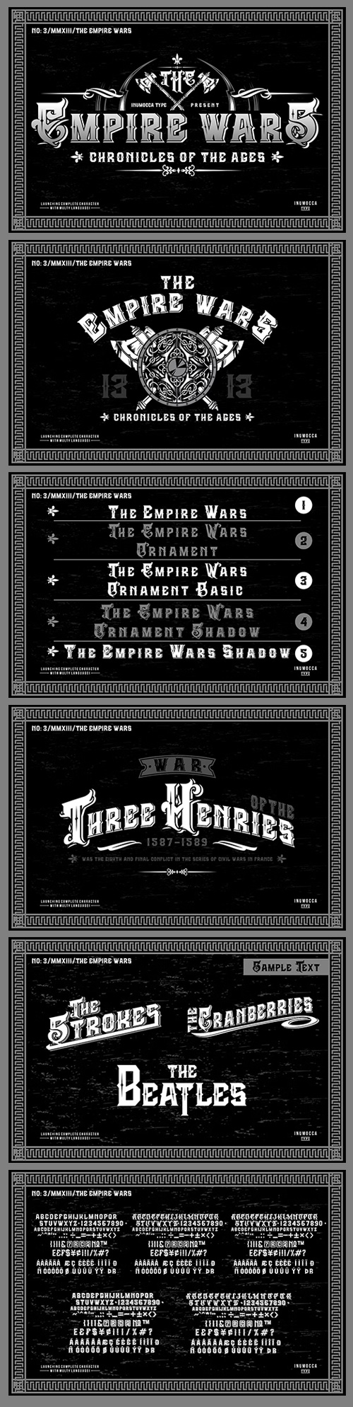The Empire Wars was inspired from lettering on medieval age. Its really great font for your band, label, clothing company, etc.