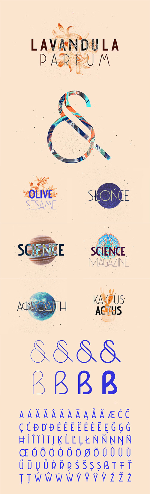 - Features 417+ glyphs and 183 alternate character. including initial and terminal letters, alternates, ligatures and multiple language support.