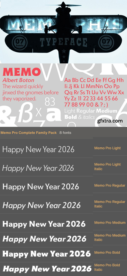 Memo Font Family - 8 Fonts for $389