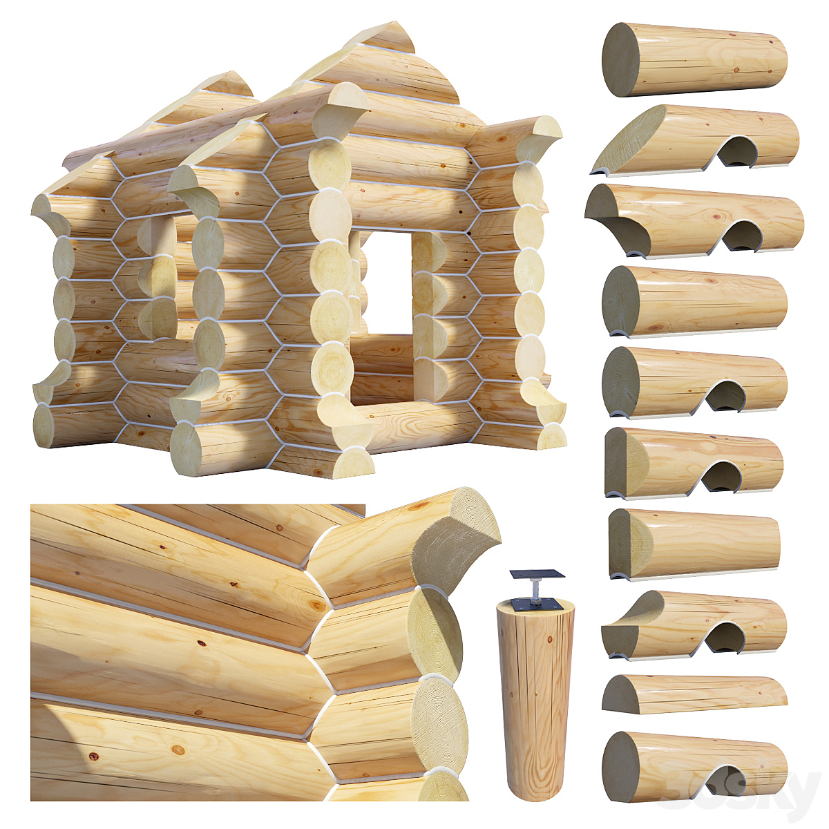 A set of logs to create the log cabins
