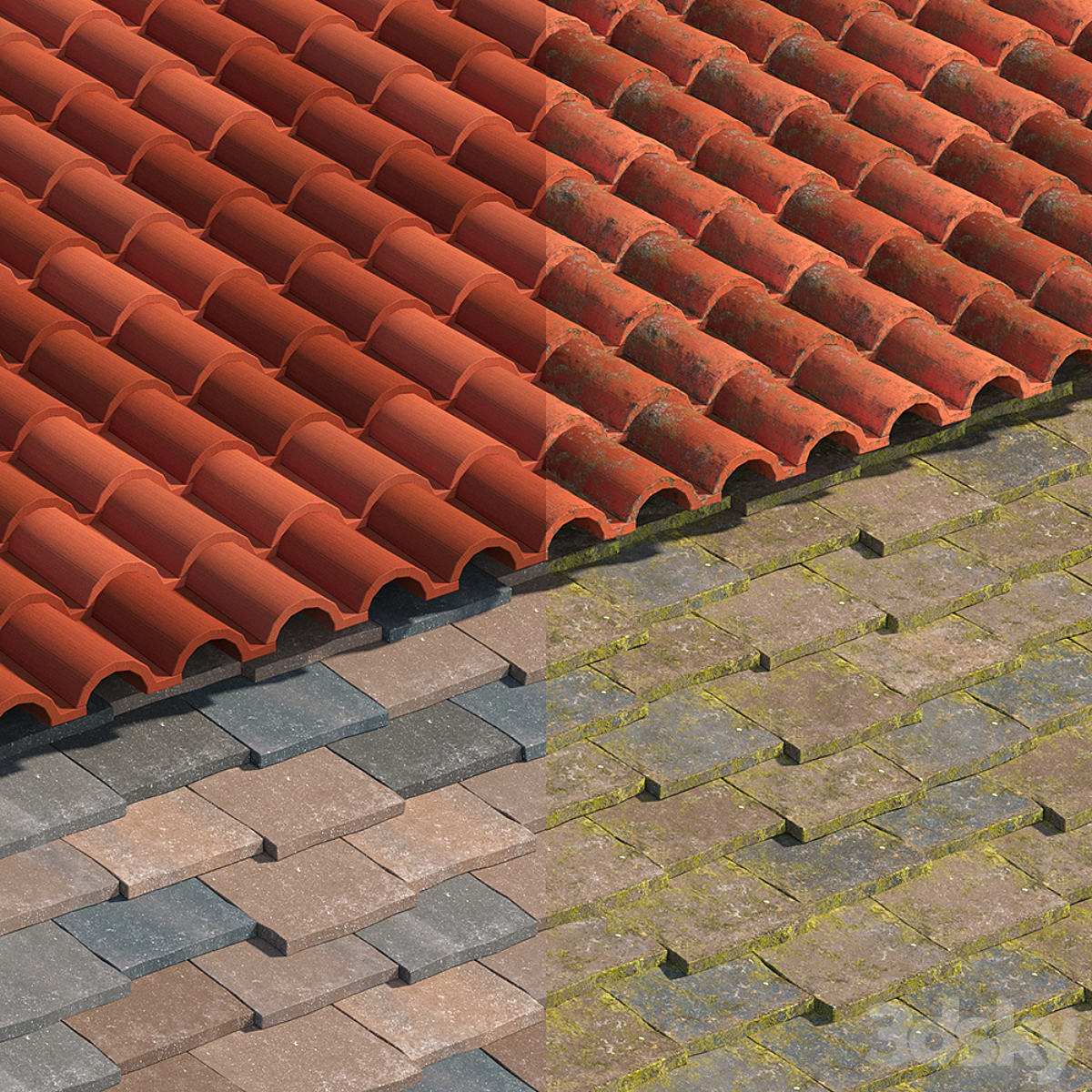 Wooden roof tiles seamless model_5