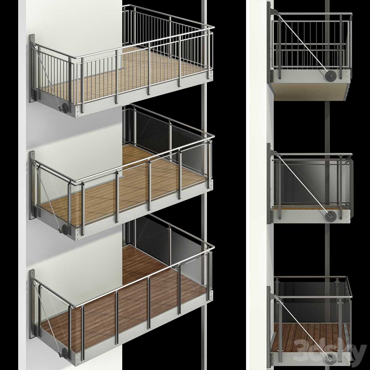 Metal Balcony - Metal Railing Set 001