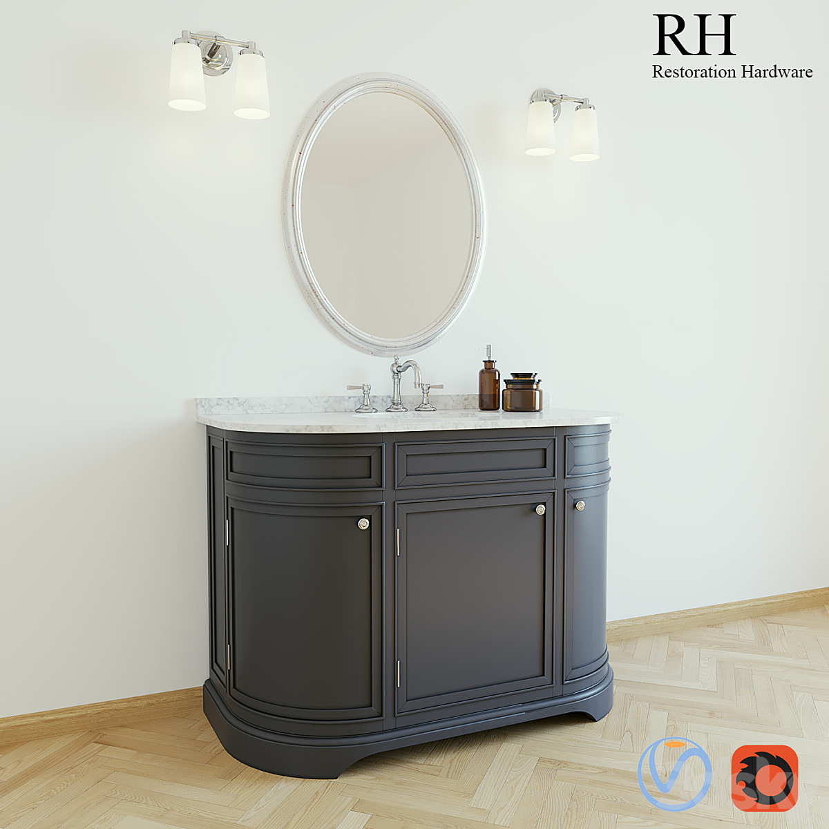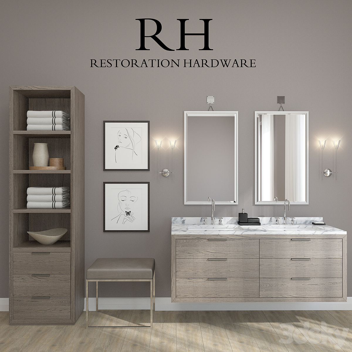 RH Modern Bezier floating double vanity