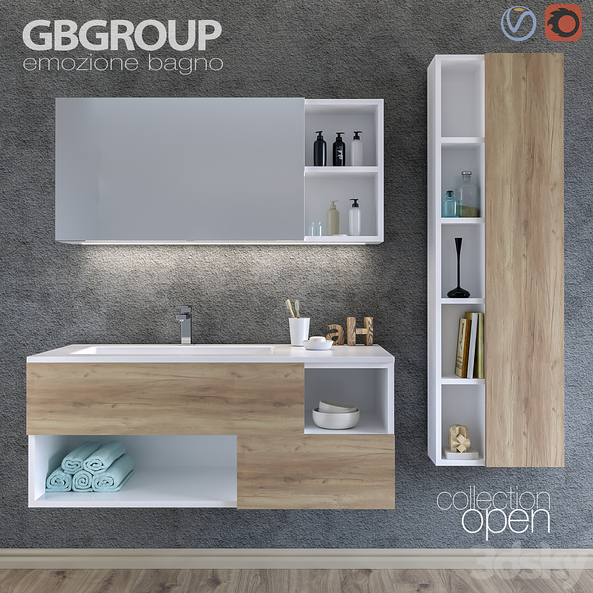 Set of bathroom furniture OPEN 01 + Bathroom Accessories