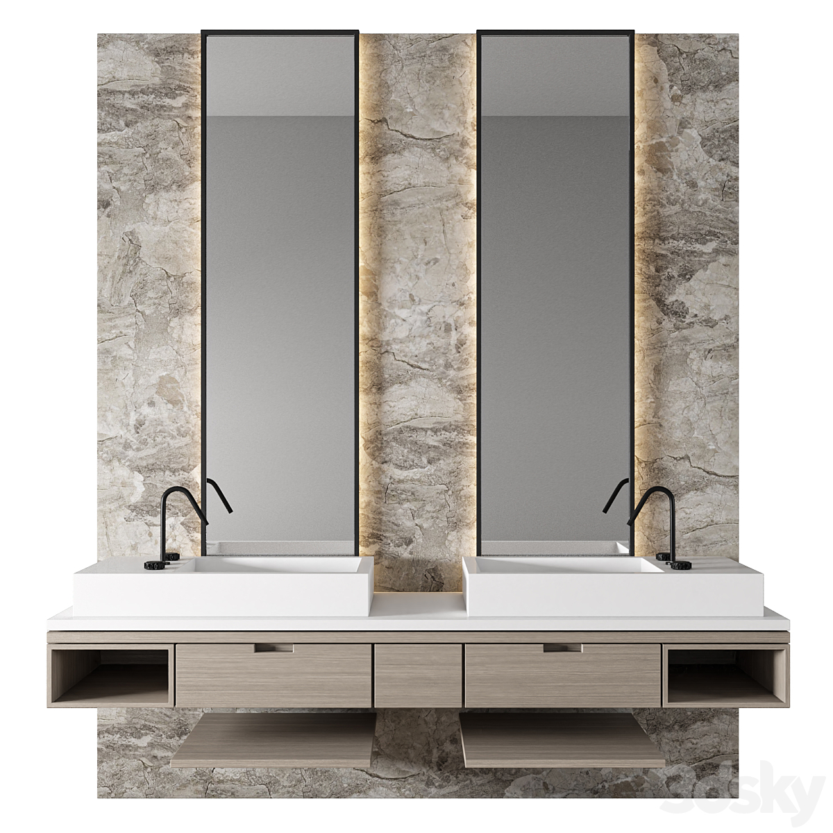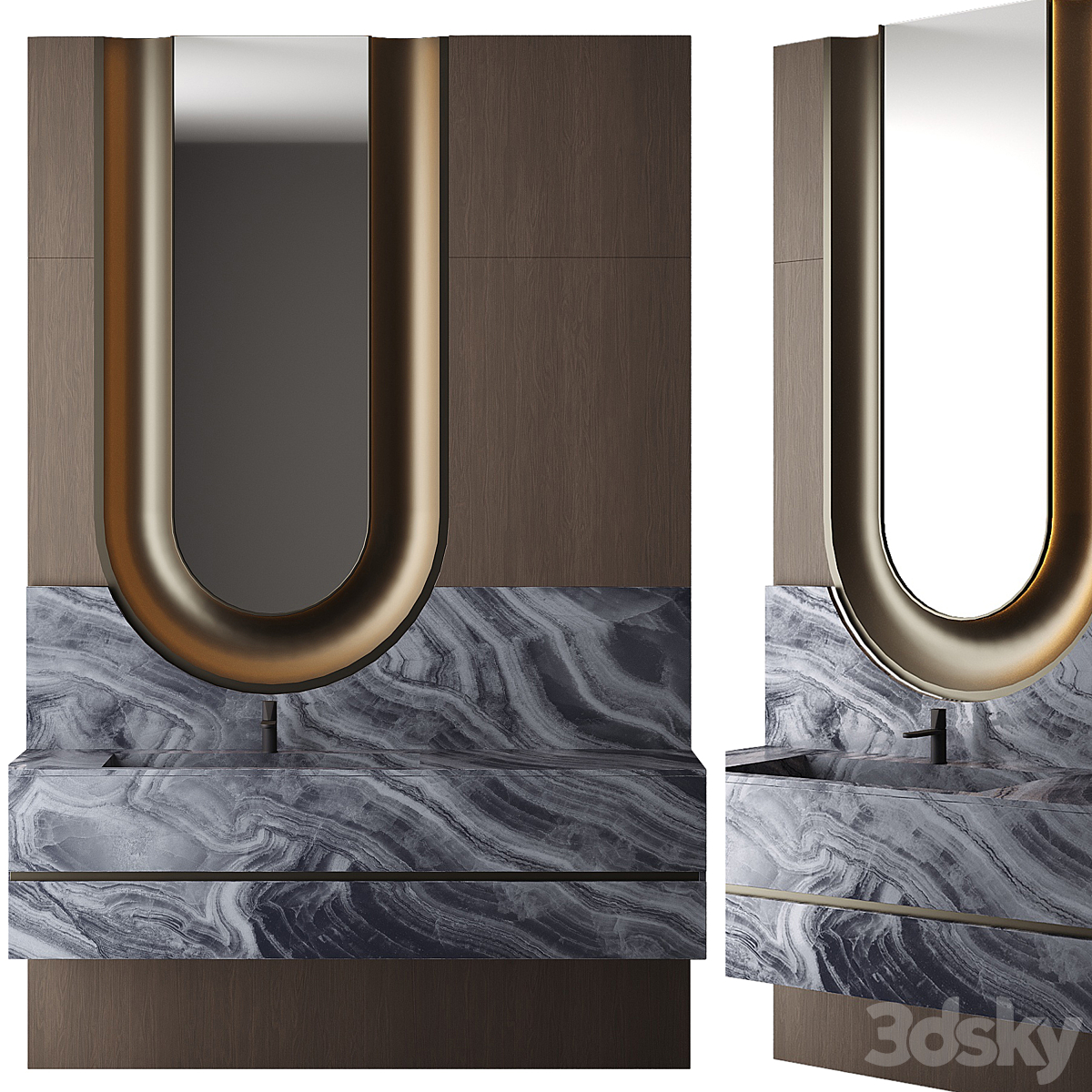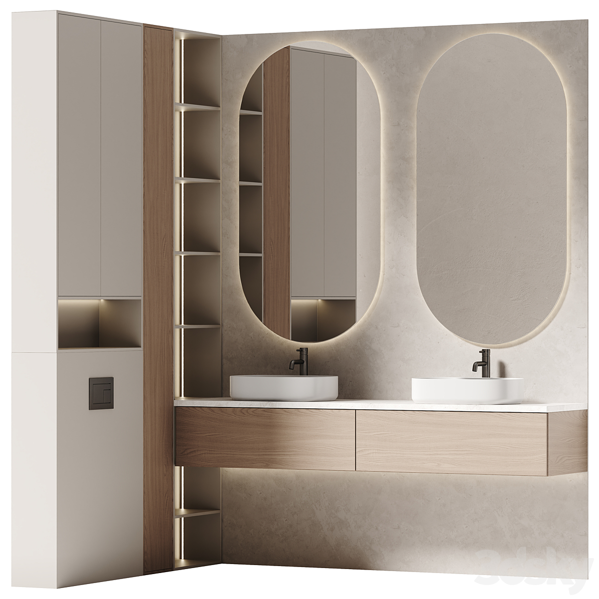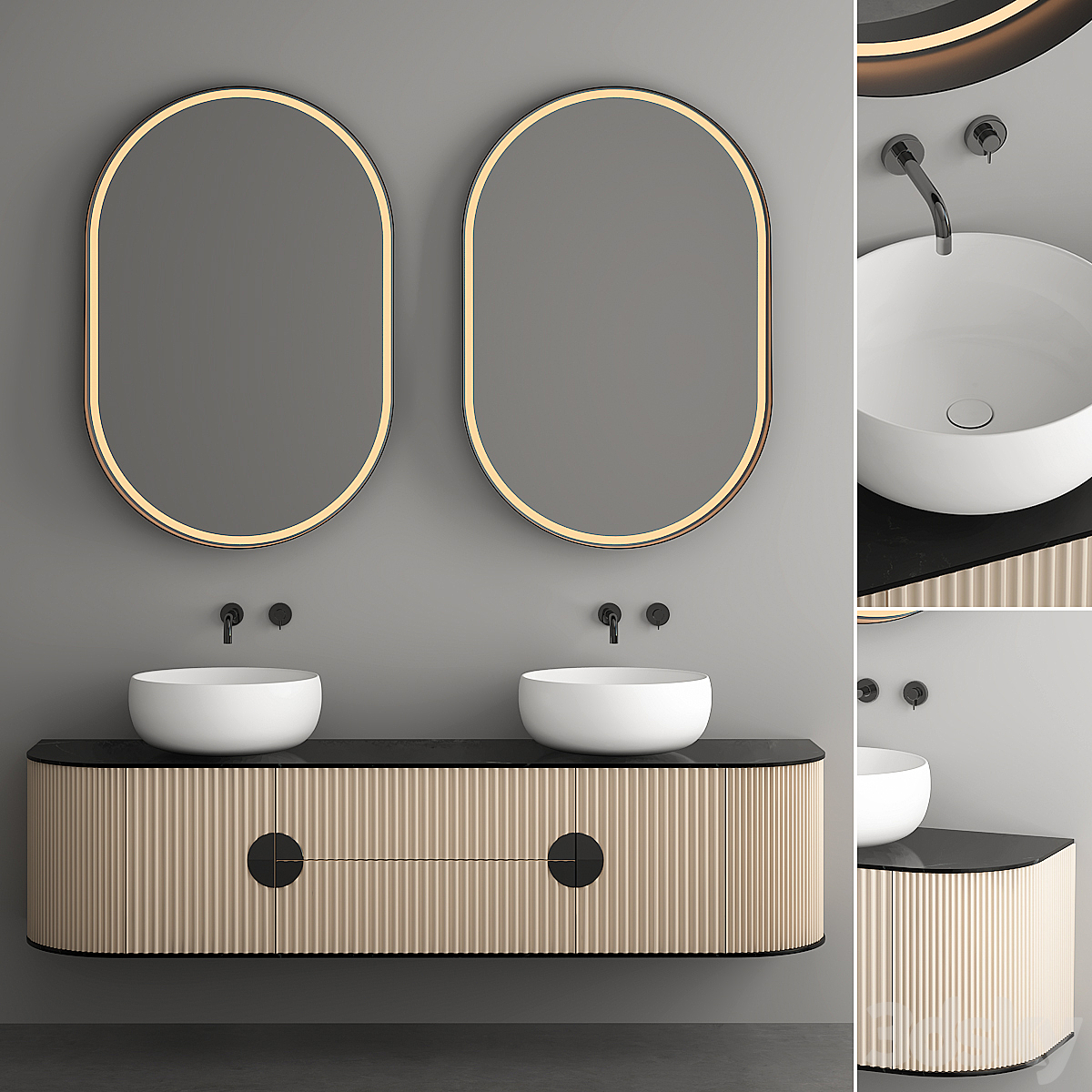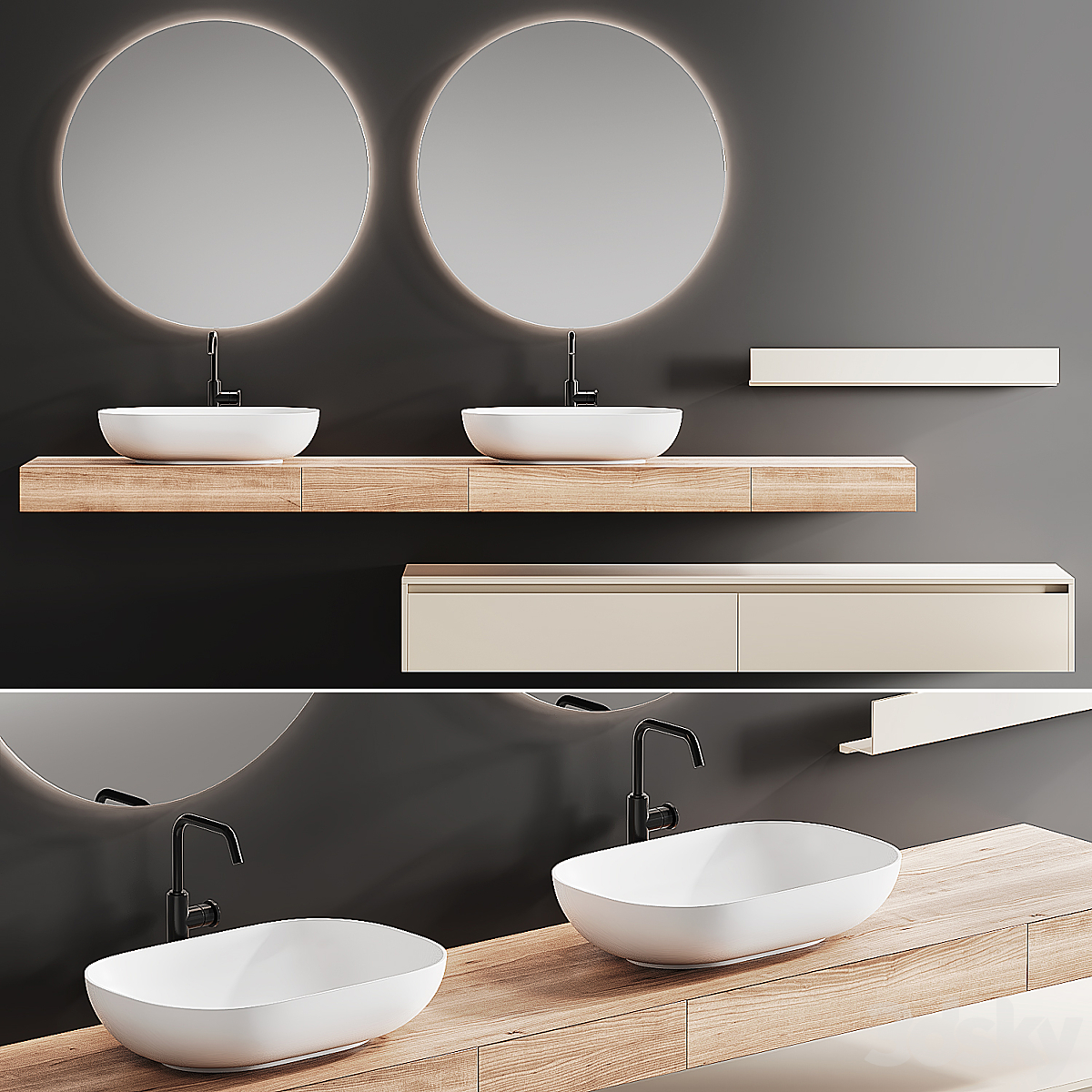 Bezier double floating vanity RH
