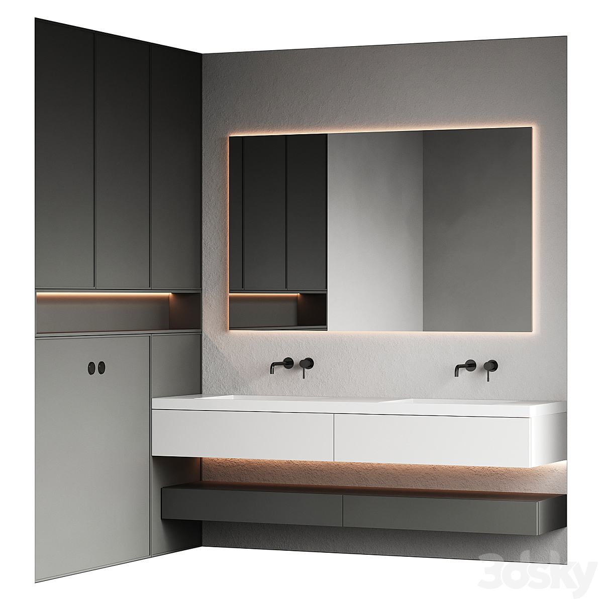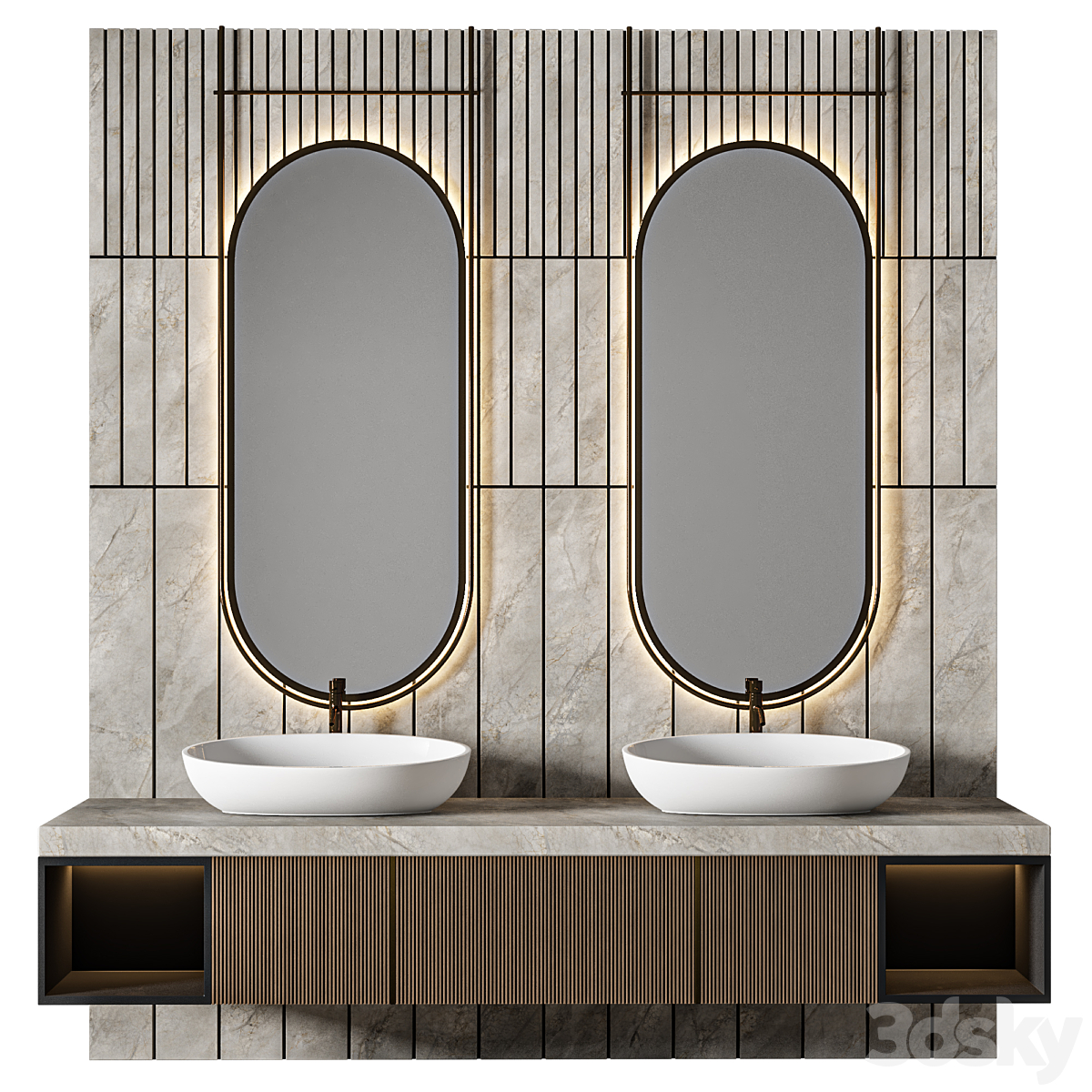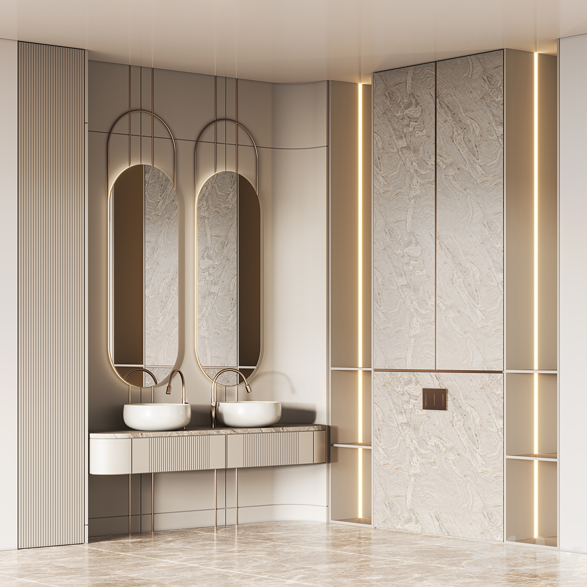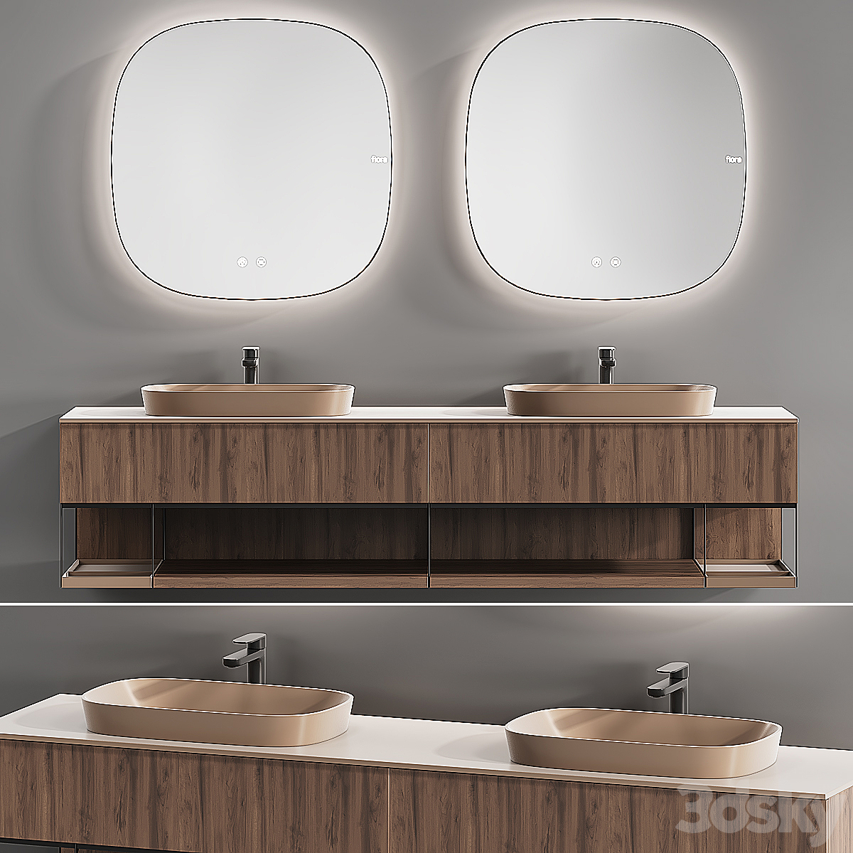 Bezier double floating vanity RH