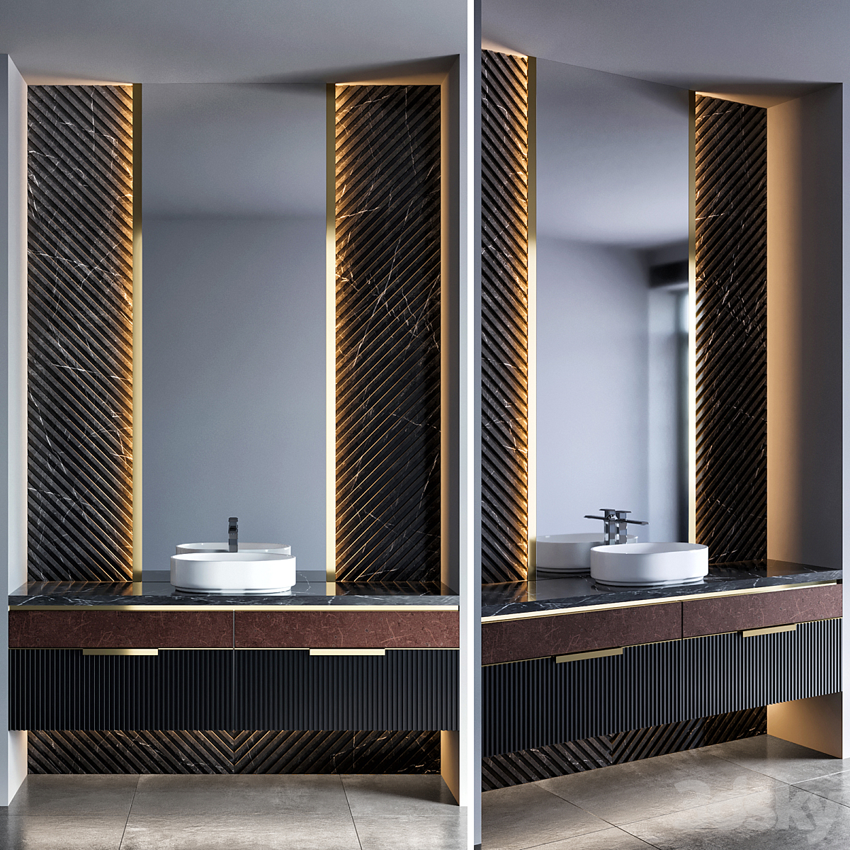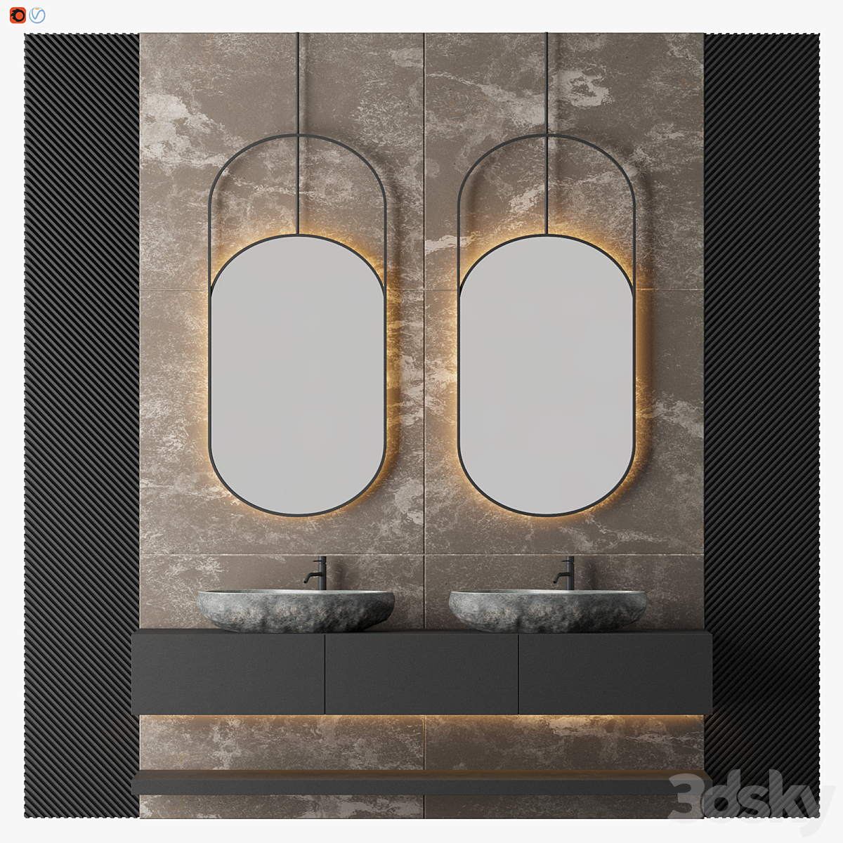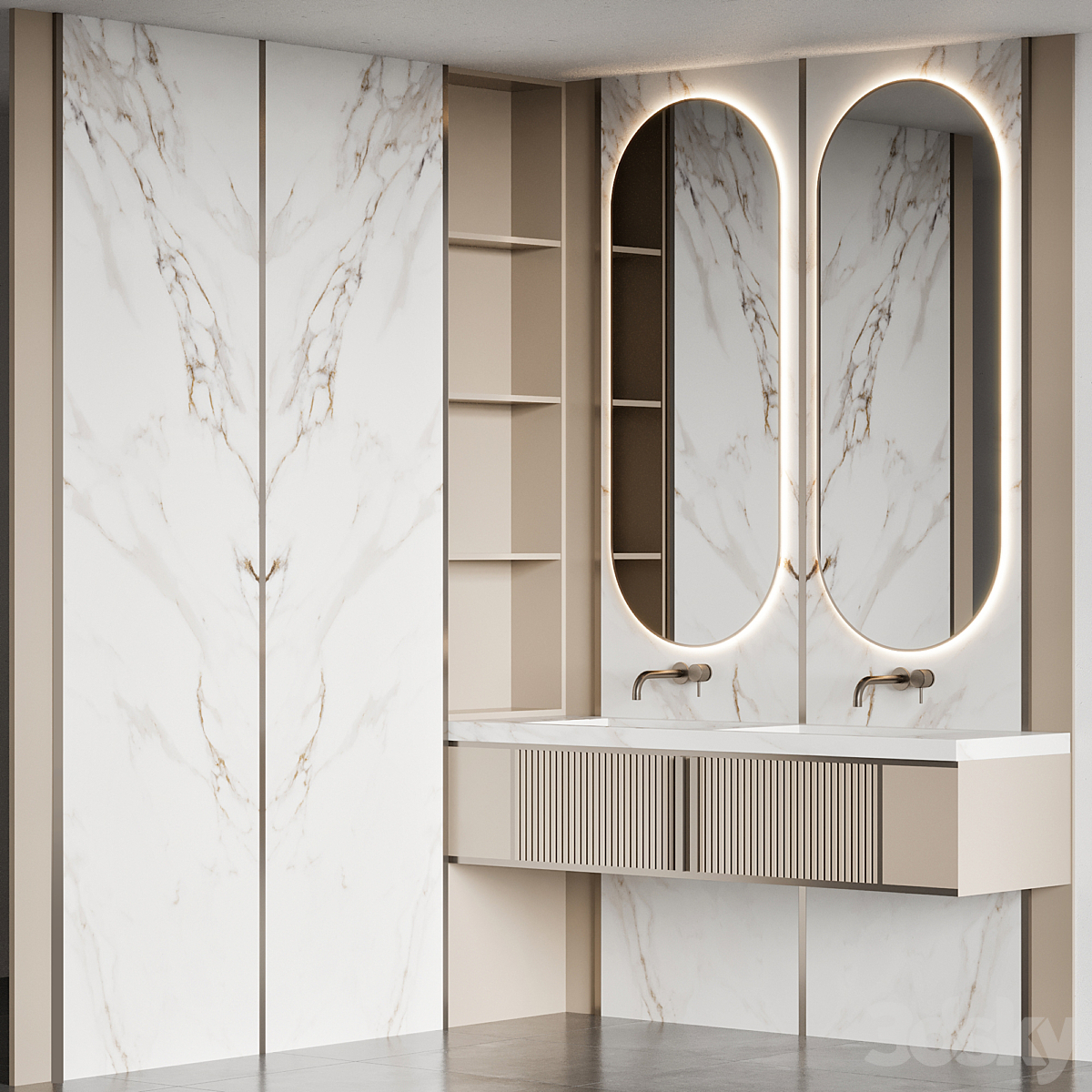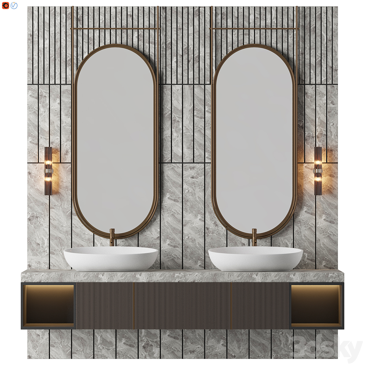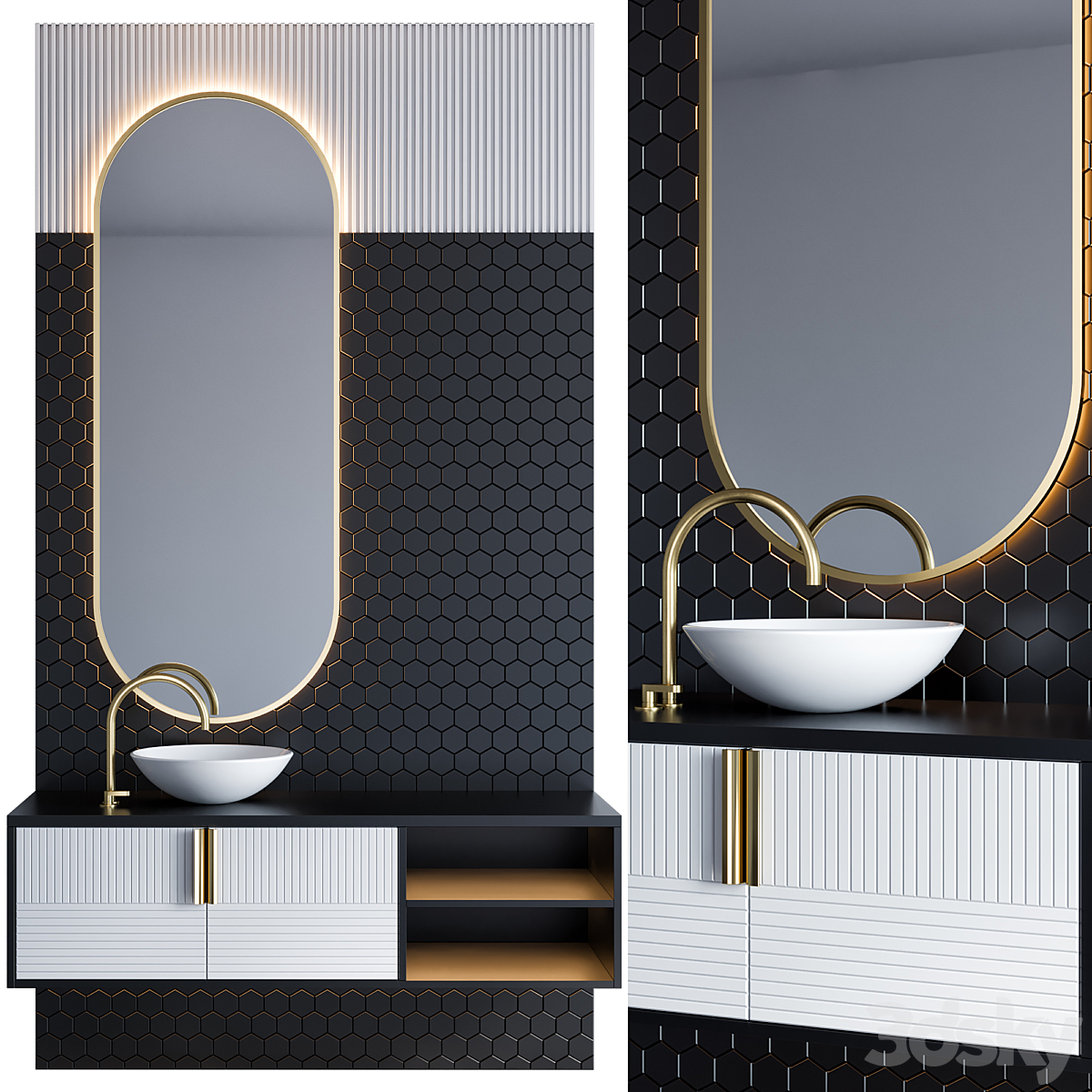 Bezier double floating vanity RH