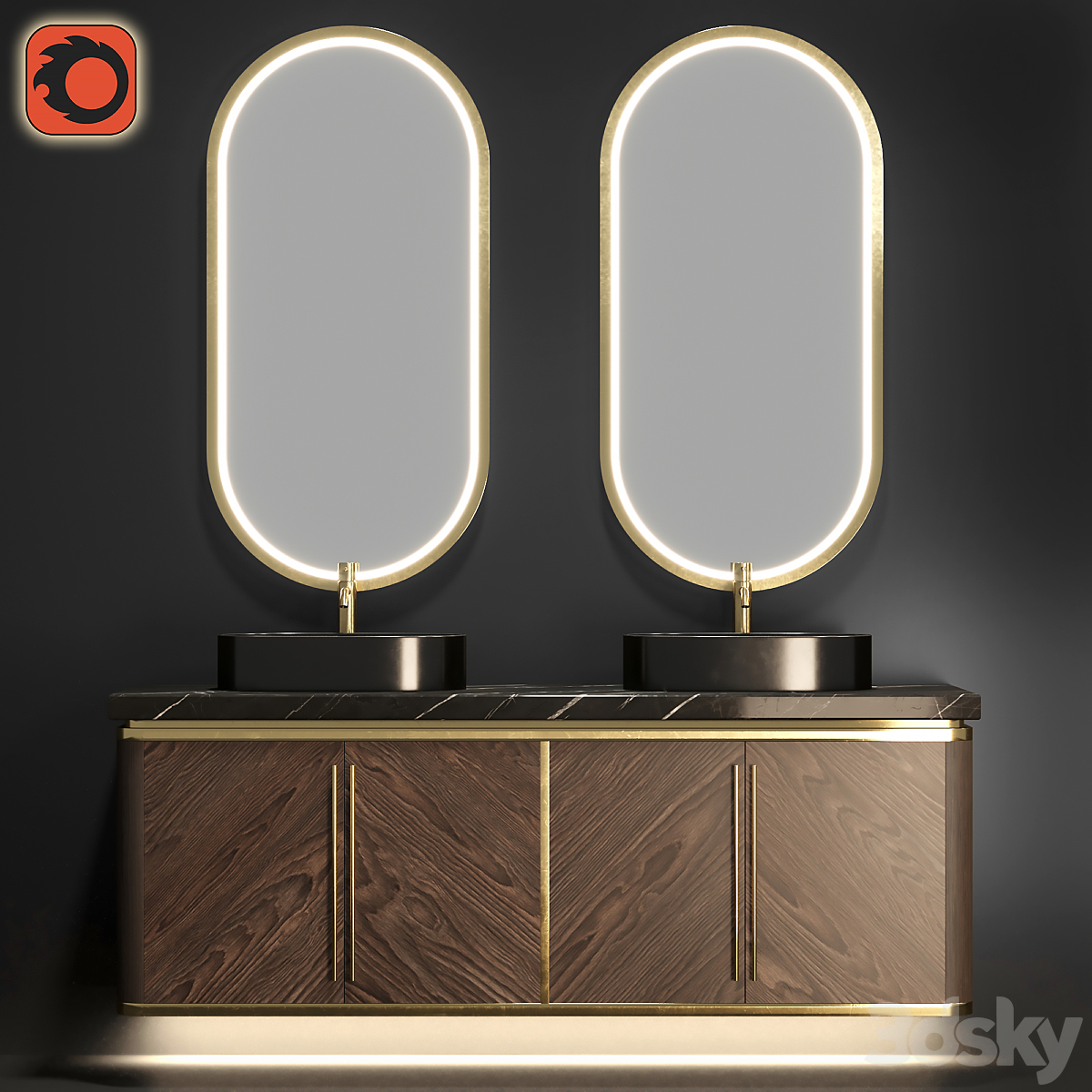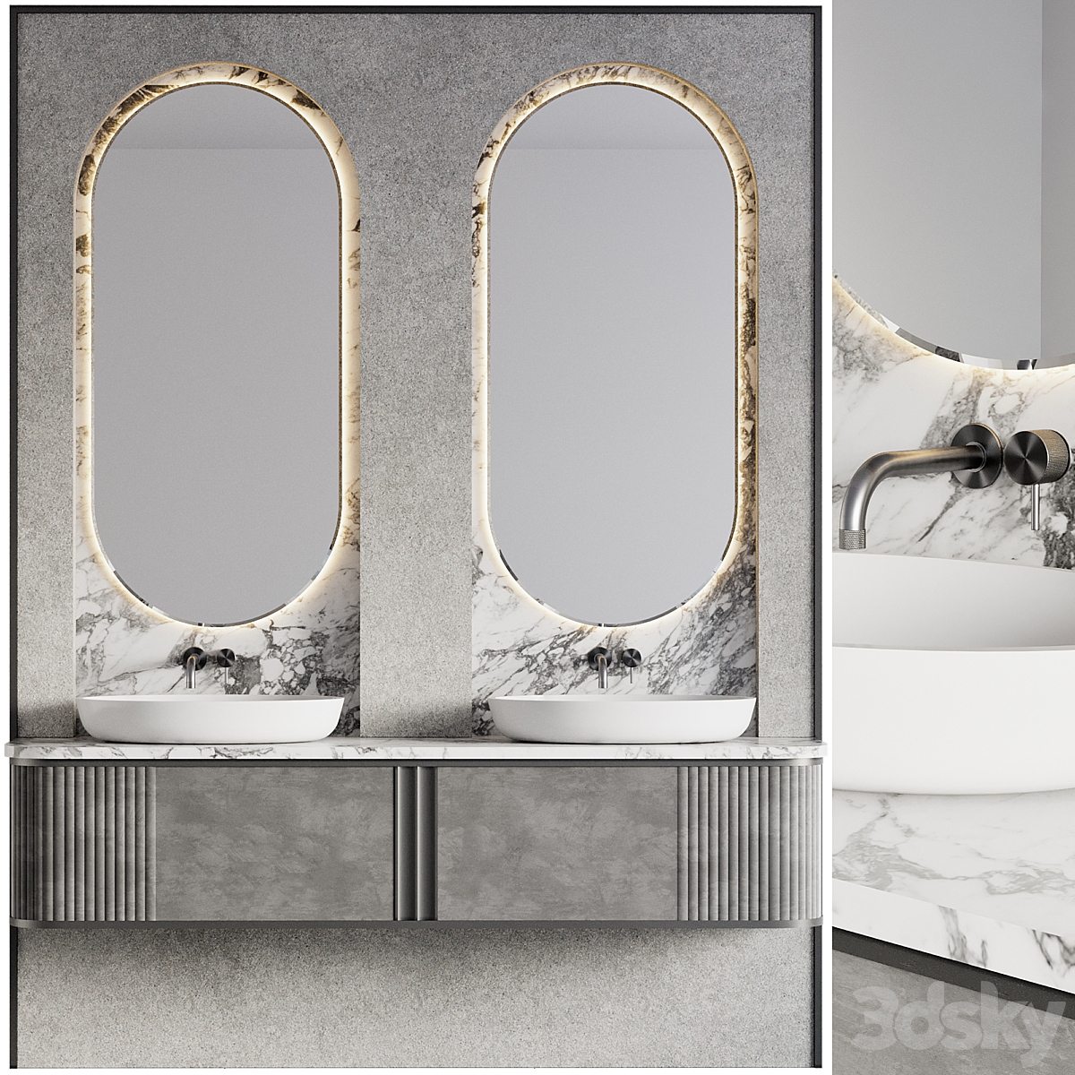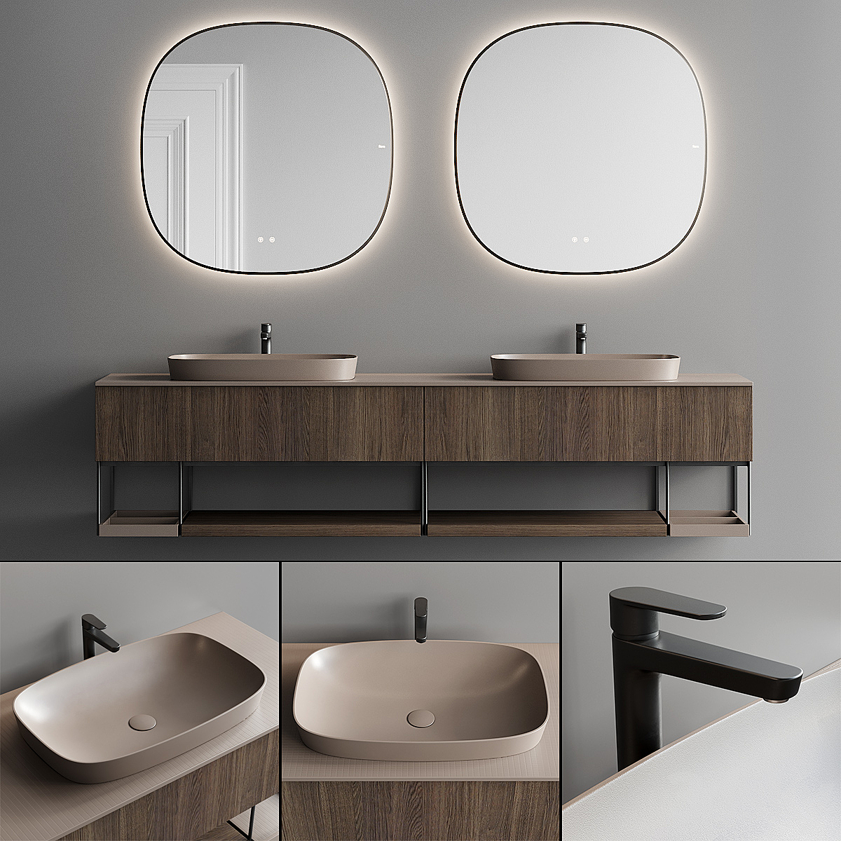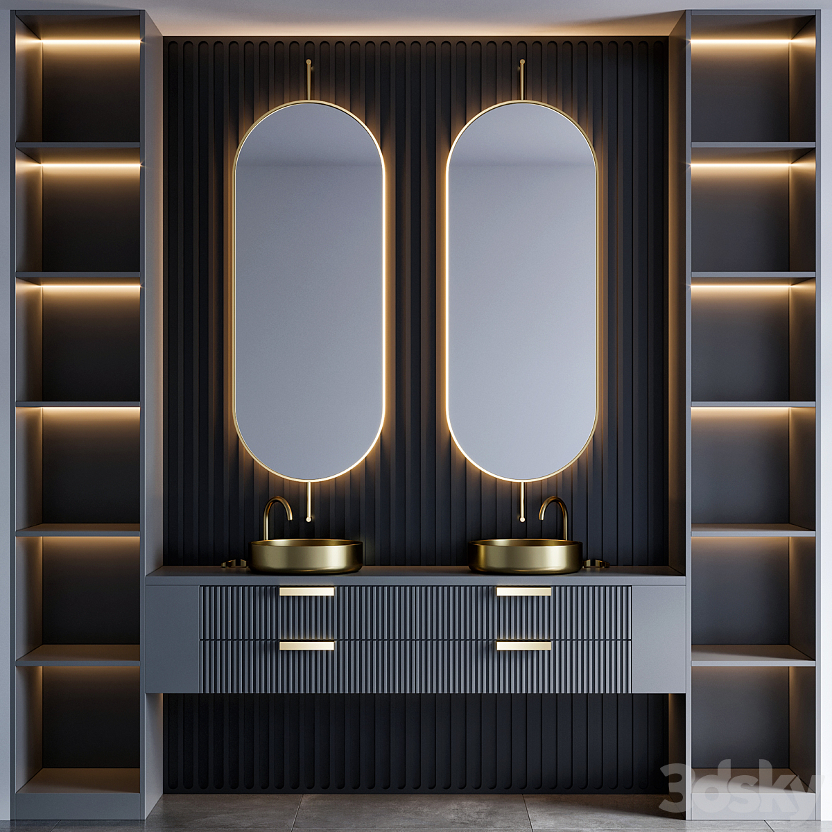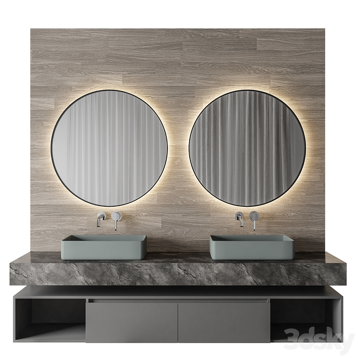 Bezier double floating vanity RH