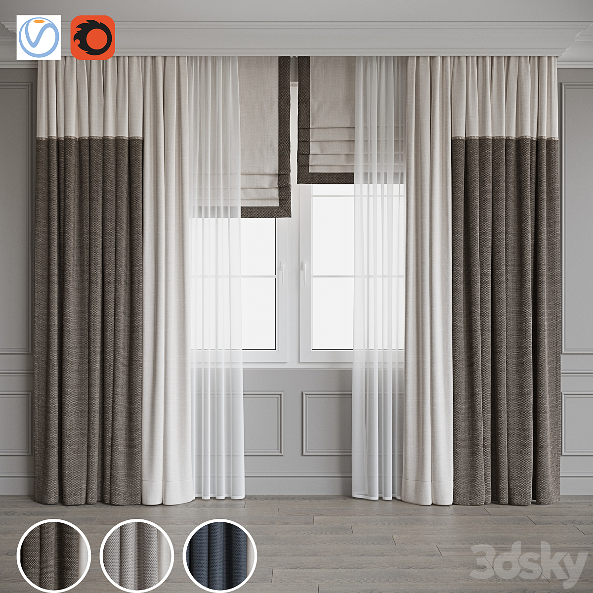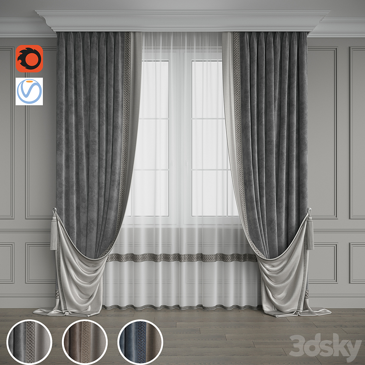 Roman curtains set 02 vray | corona