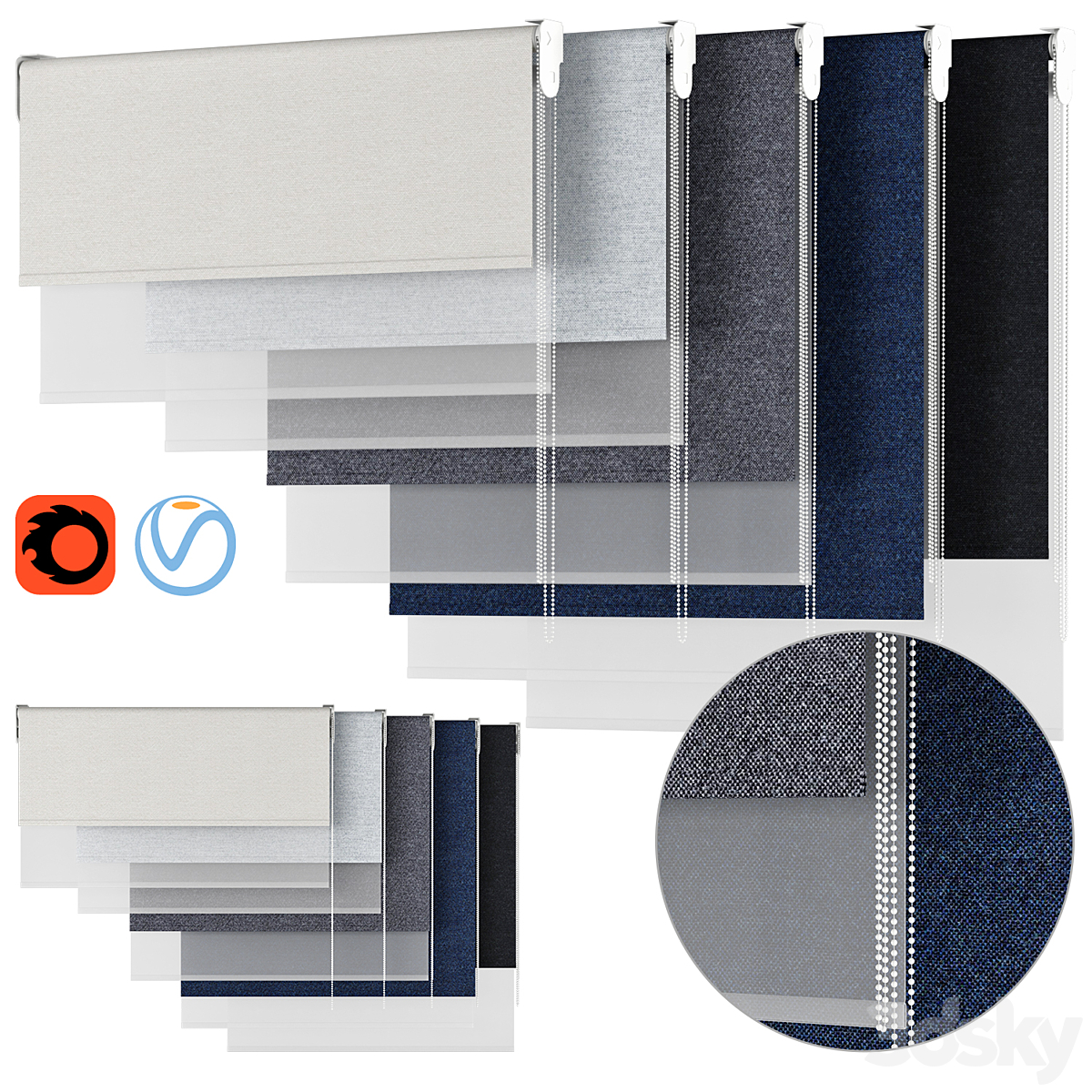 Roller blinds set 01 vray | corona