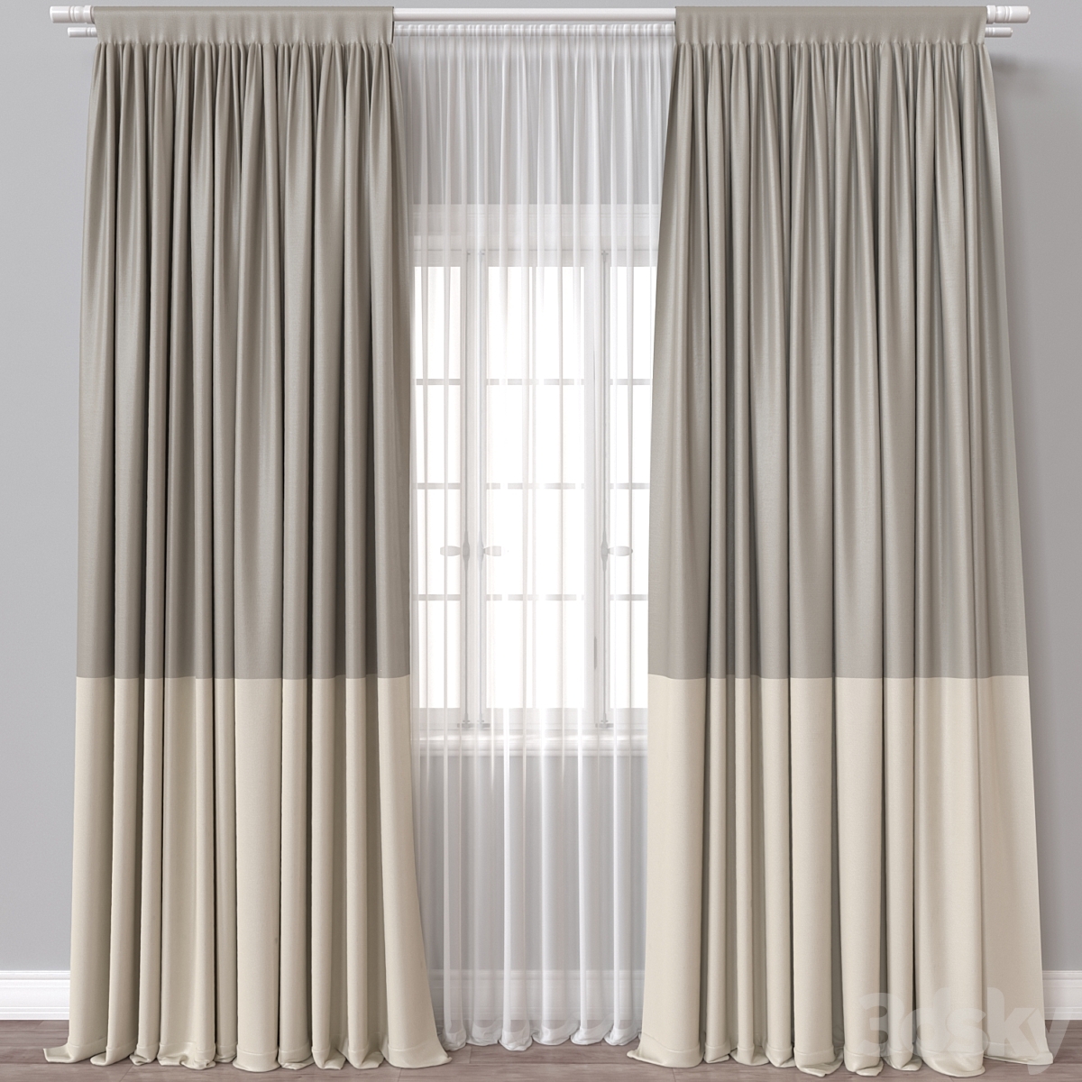 Curtains with tulle in two colors