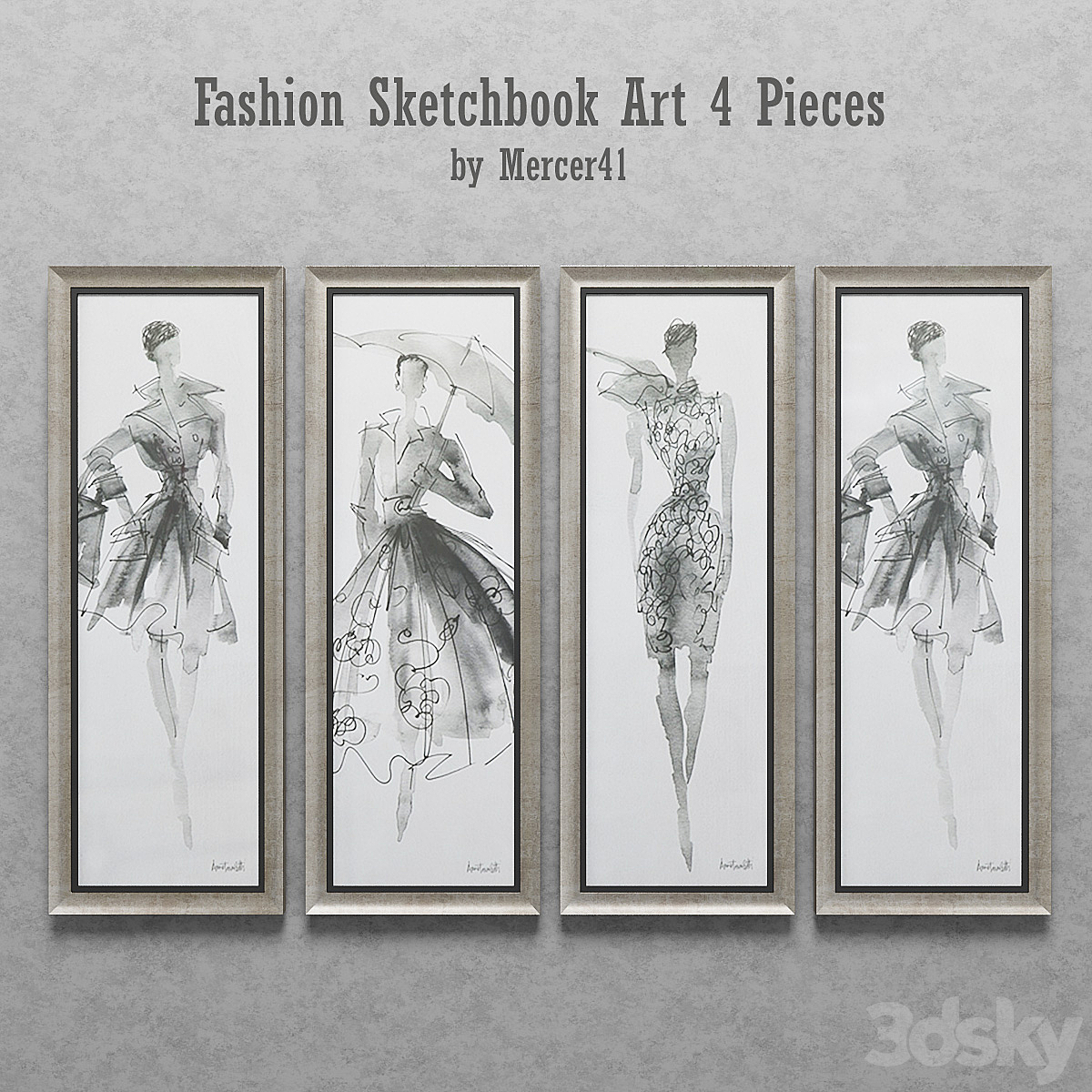 Fashion Sketchbook Art 4 Pieces