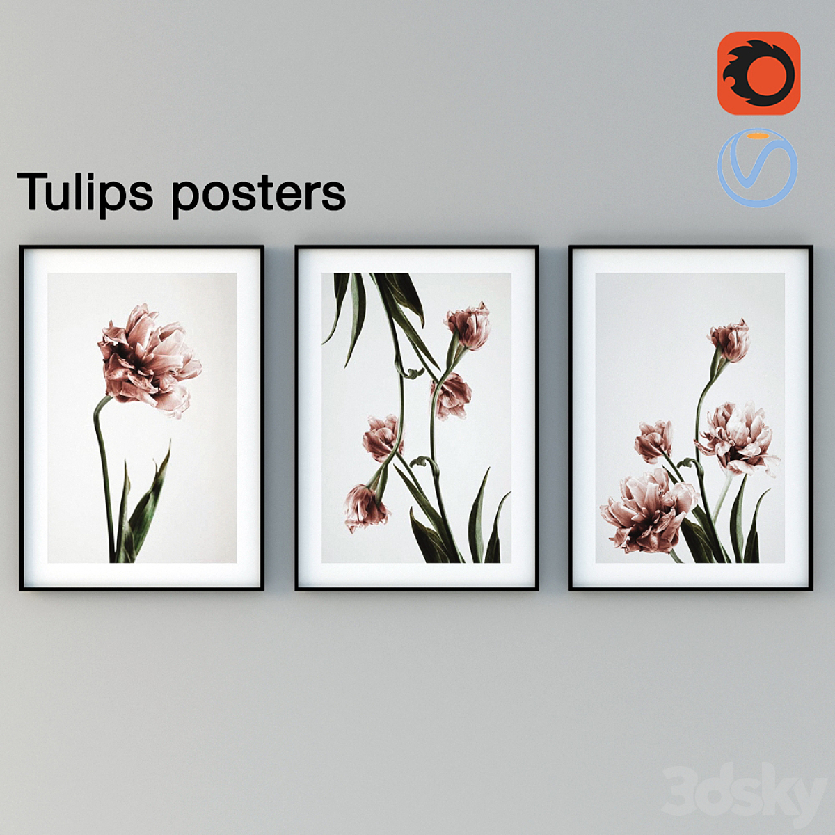 Posters with pink tulips.