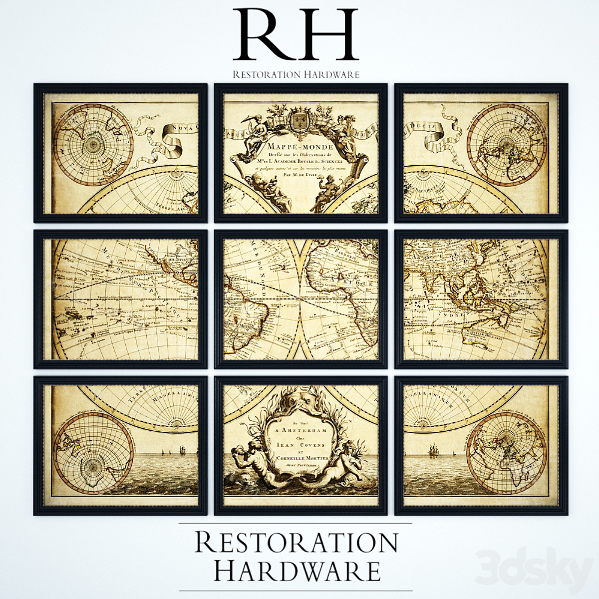 Restoration Hardware L'isle's 1720 World Map Frames