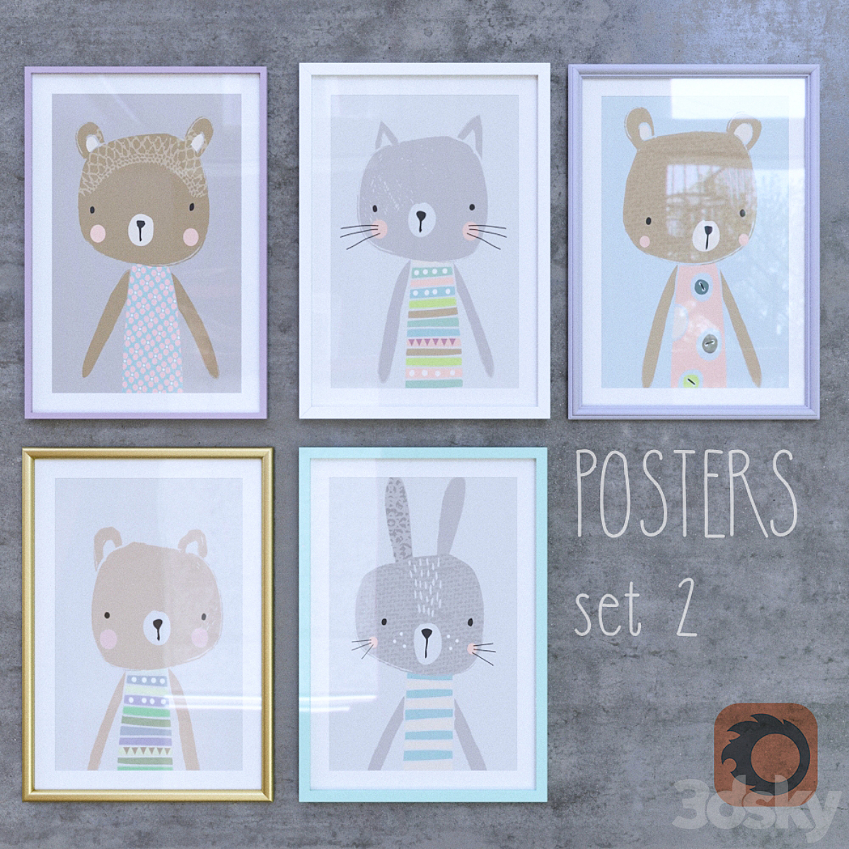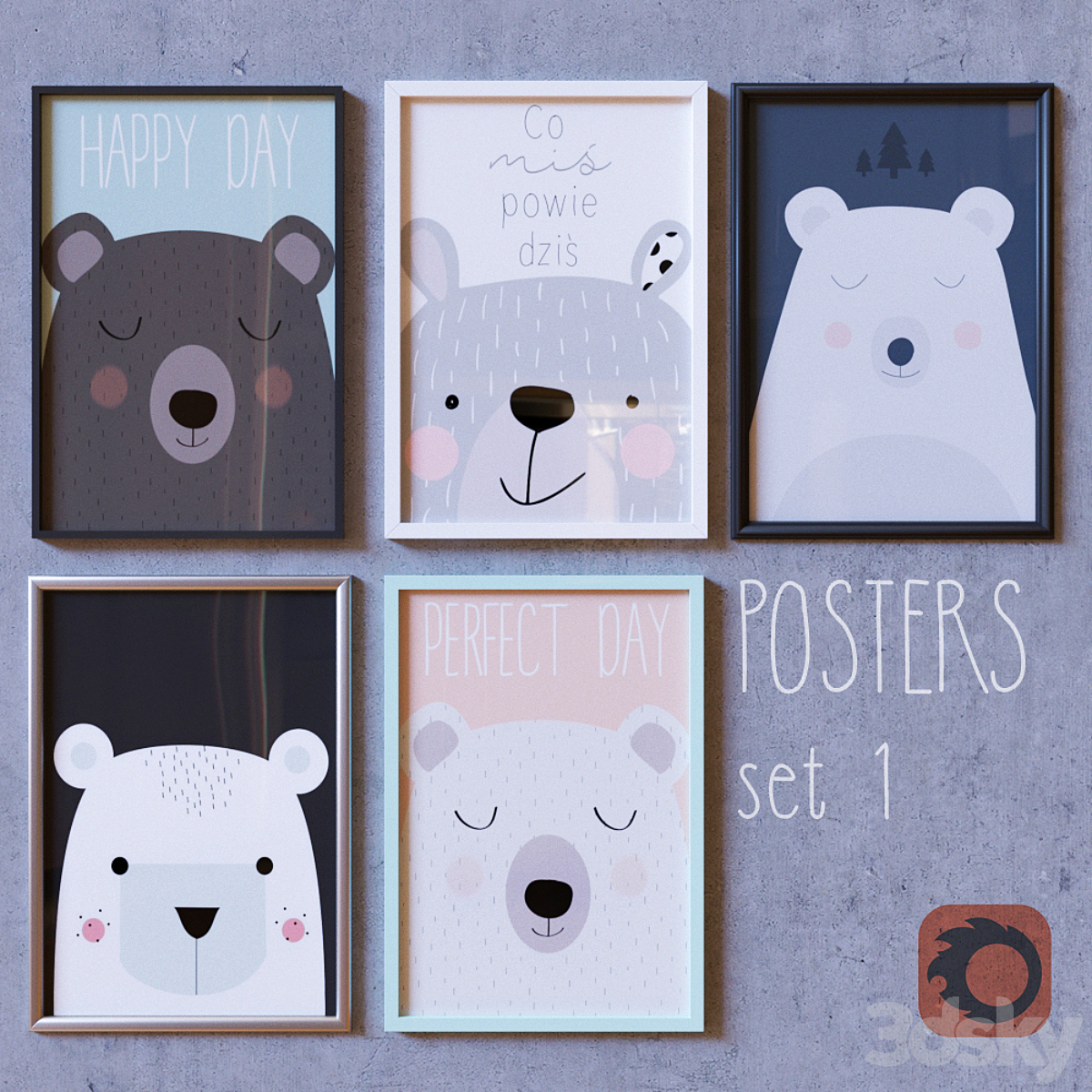 Posters in the nursery with bears