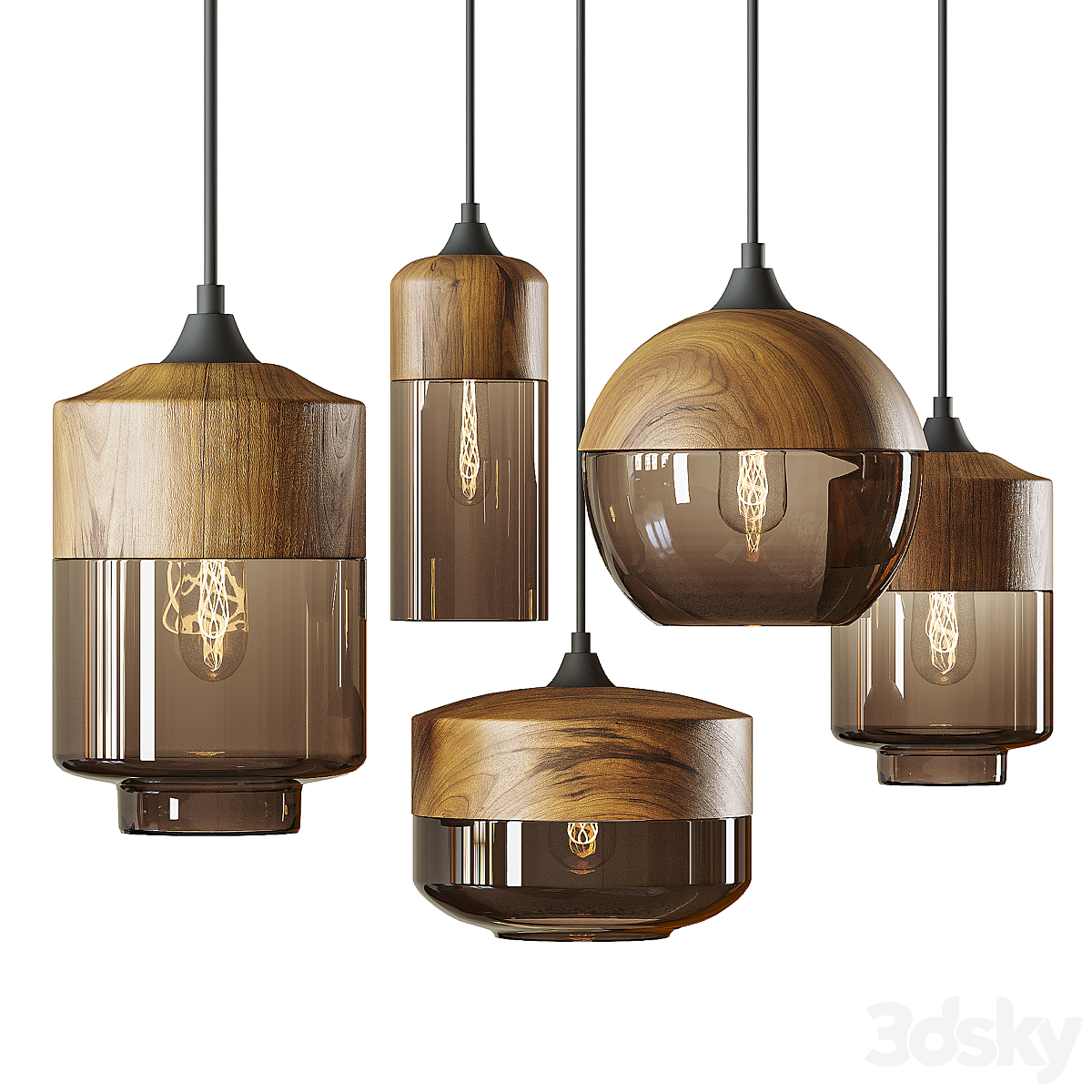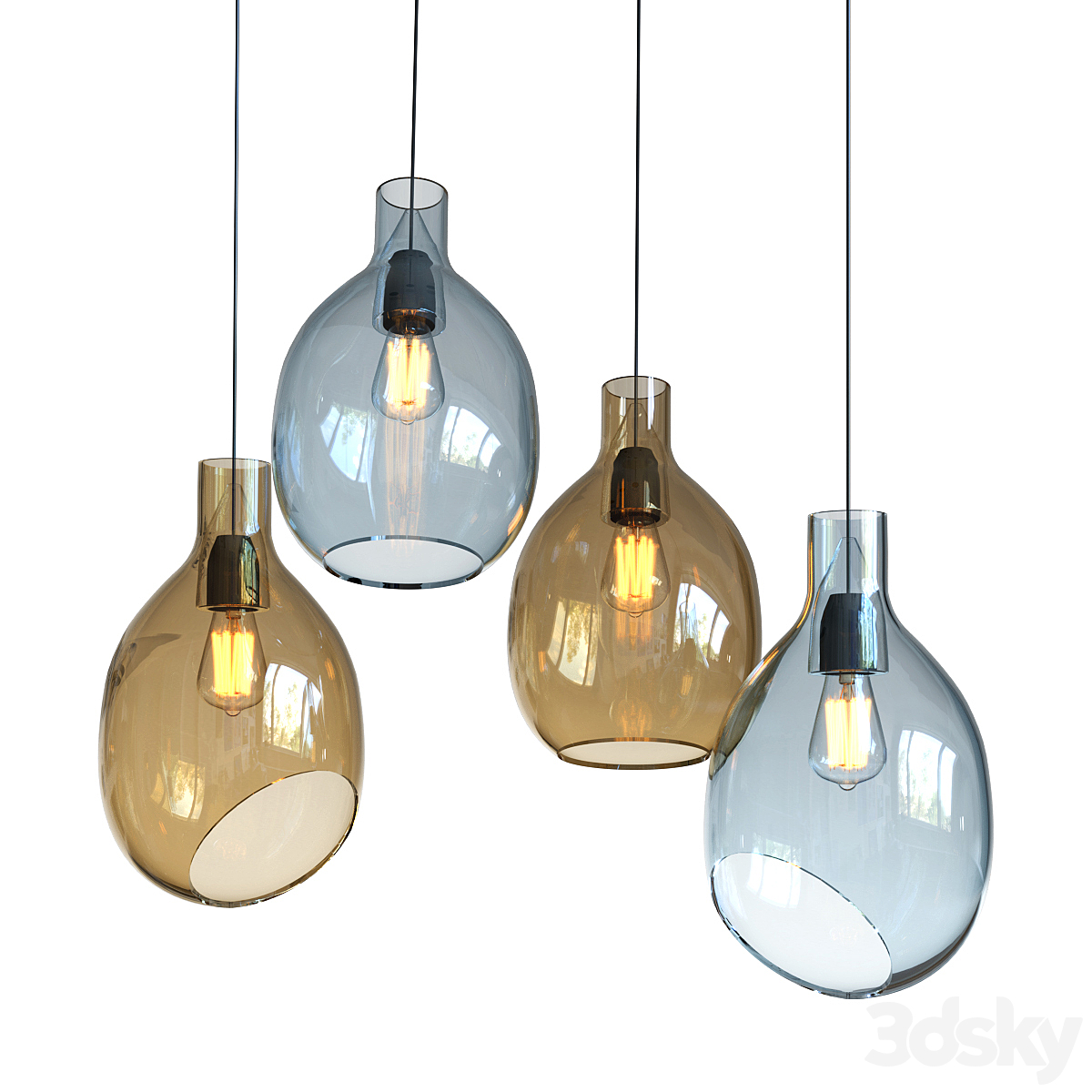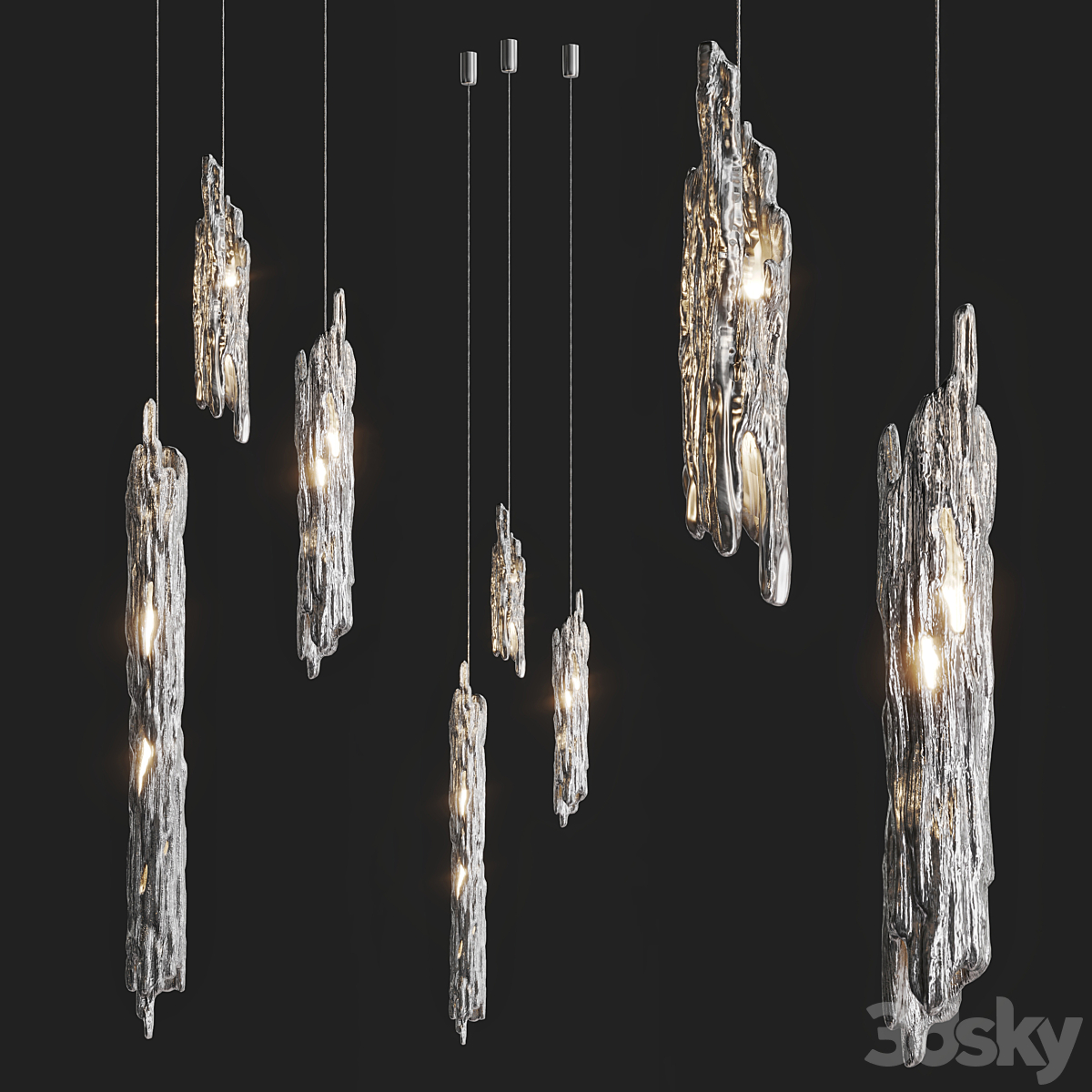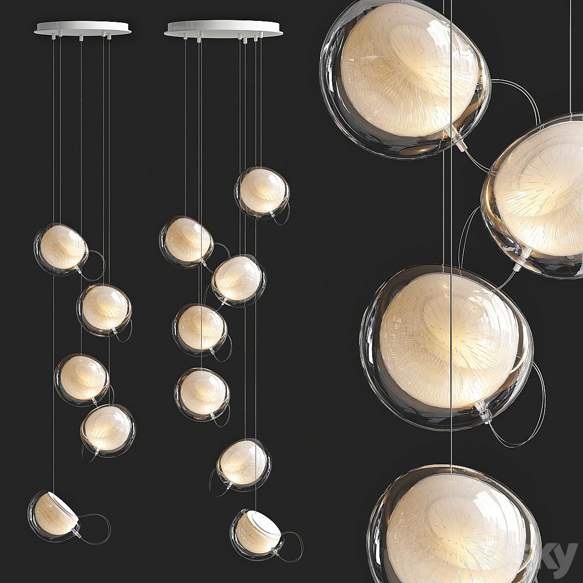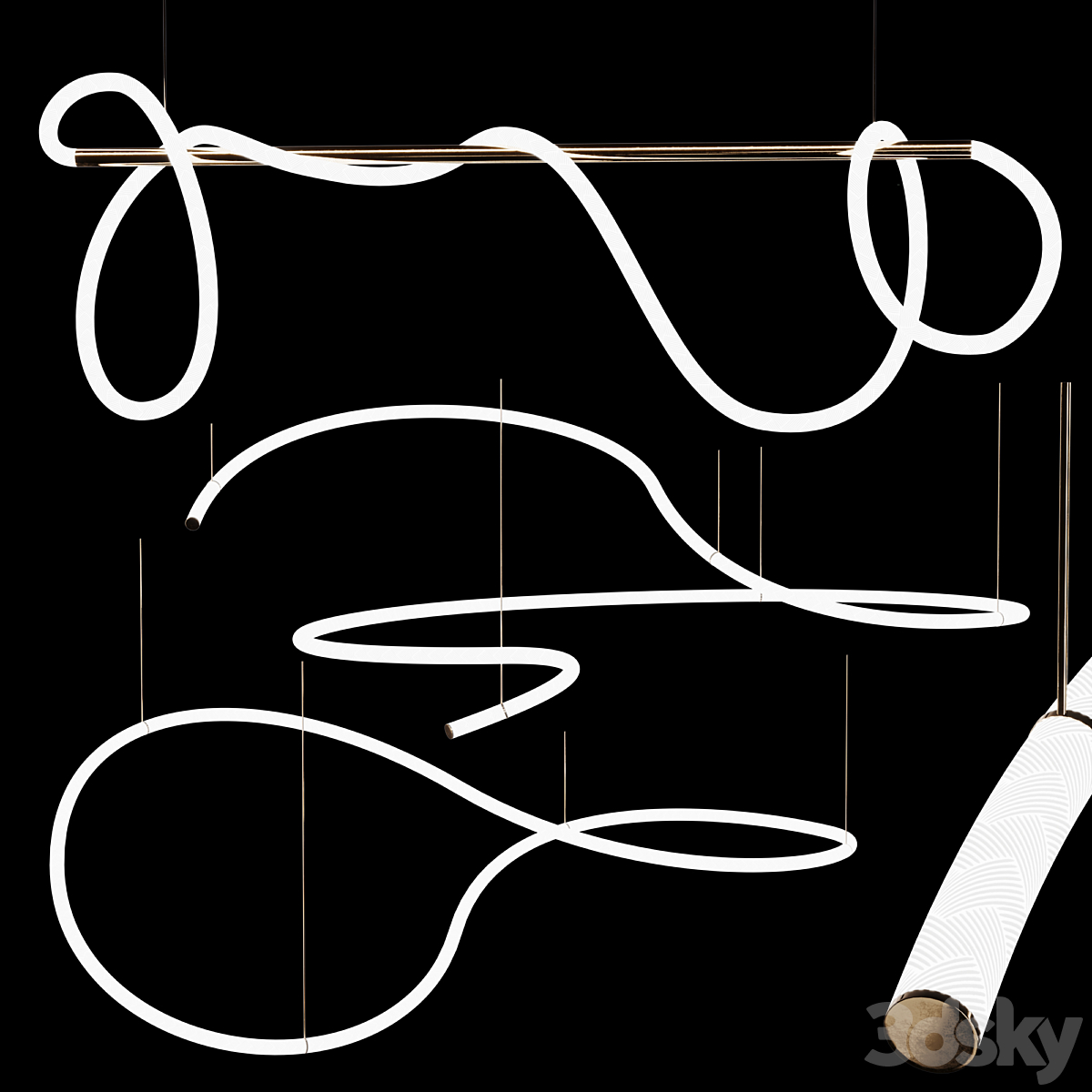 3 LED pendant lamps (OPAL SHAPE_SQUIGGLE H4_SQUIGGLE H5)| 3lights |