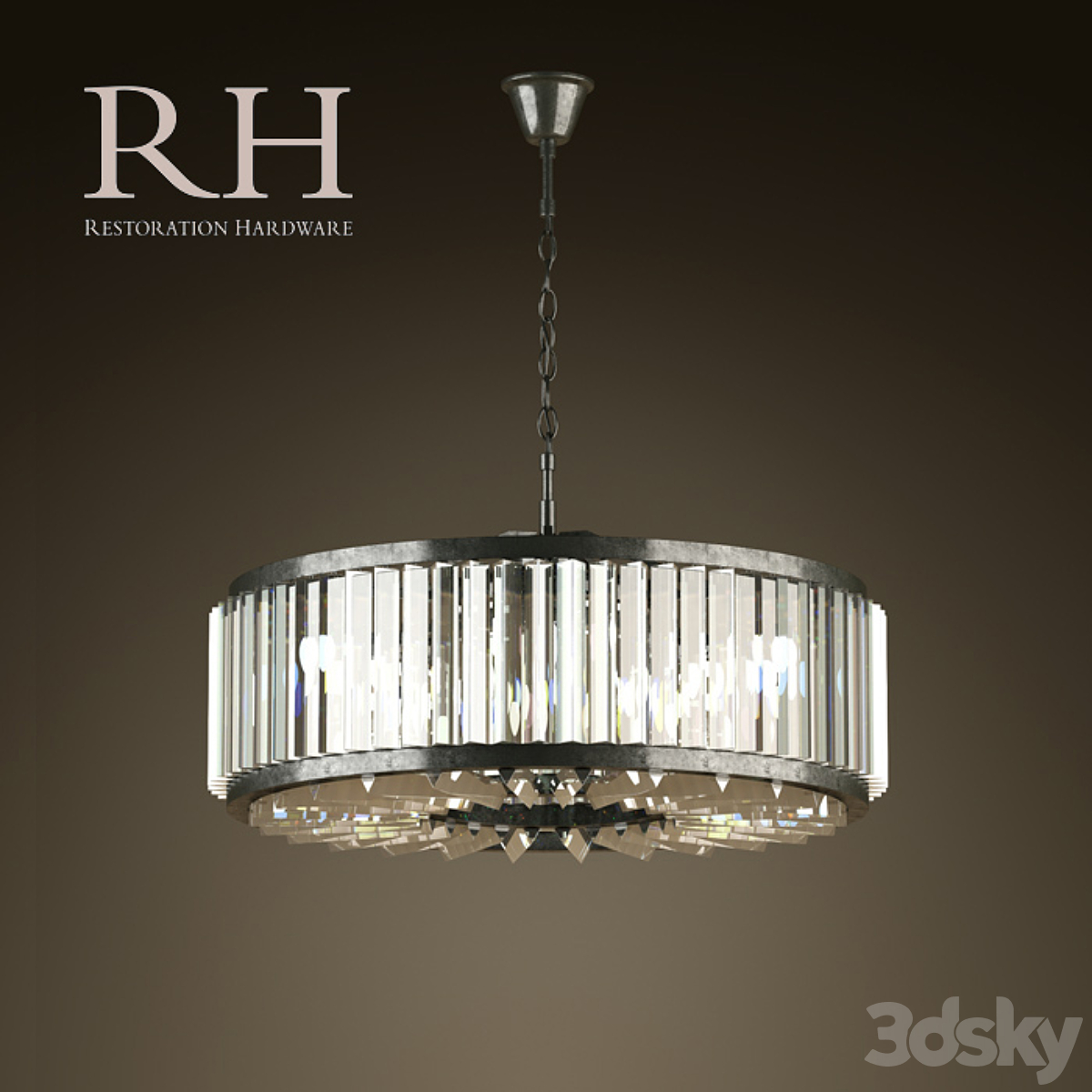 Chandelier RH 1920s Odeon Smoke Glass Fringe Grey iron 125