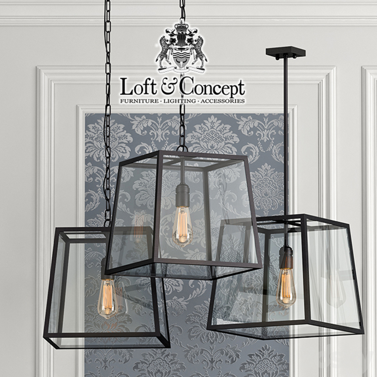 Hanging lamp LOFT VINTI Lucide black
