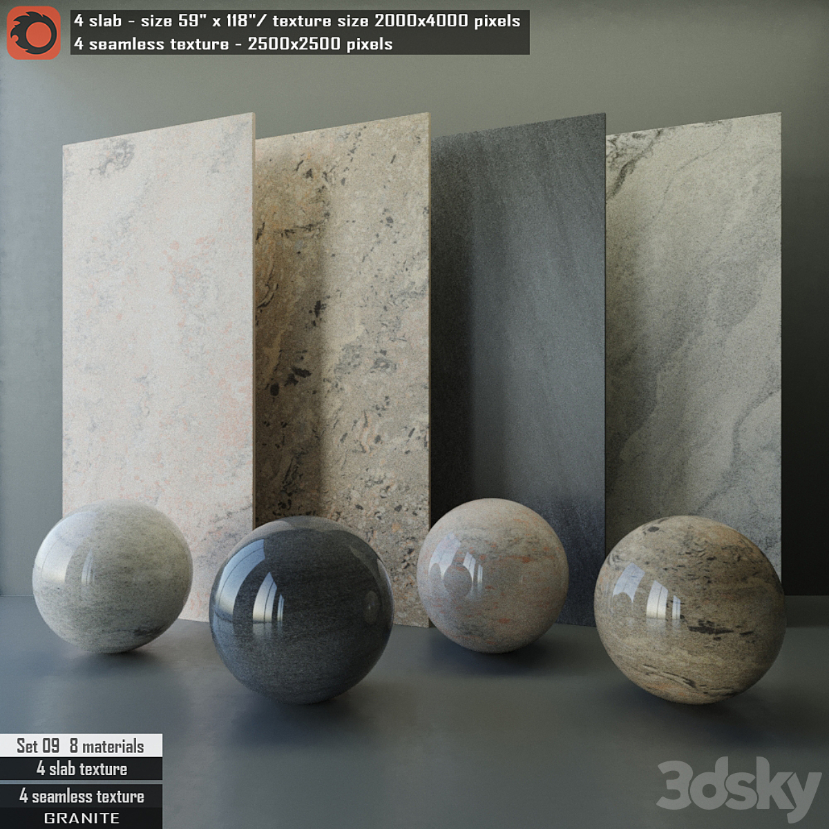 Granite slab & Seamless texture Set 09