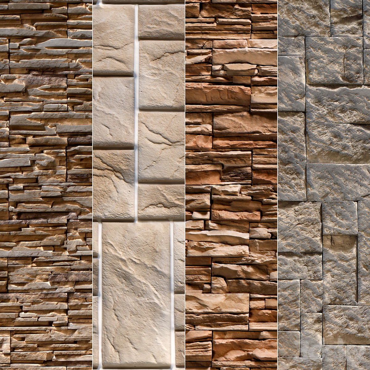 4 materials (seamless) - stone, plaster - set 12