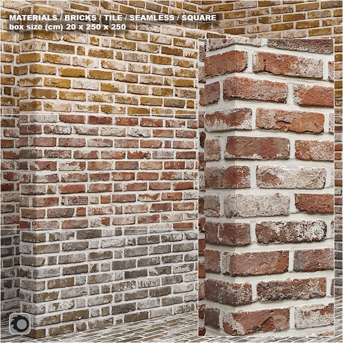 Collection of brick walls 5 pcs. Masonry, brick, loft, aged, set, collection, decorative, panel, wall