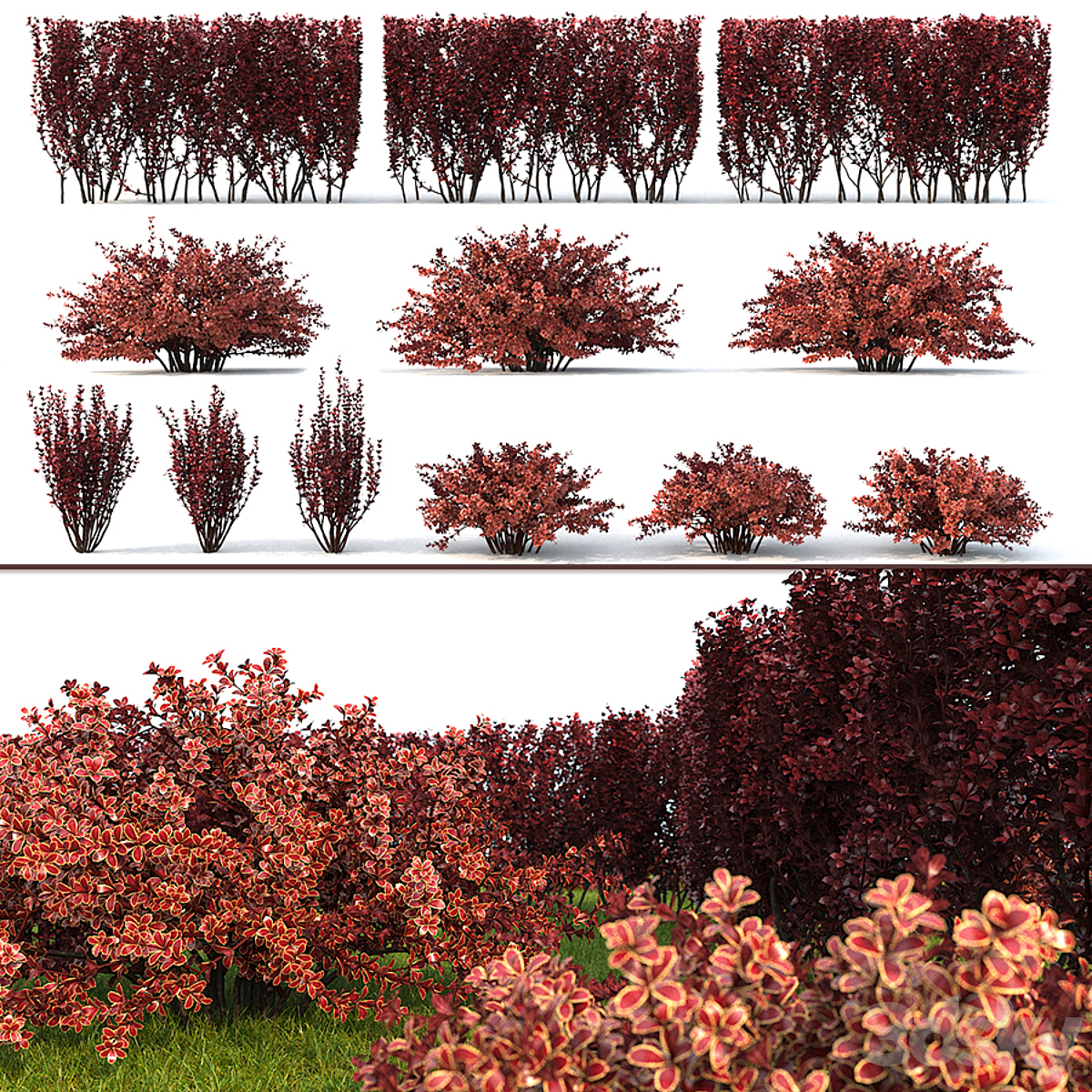 Collection mixed plants bush_shrubs set 04