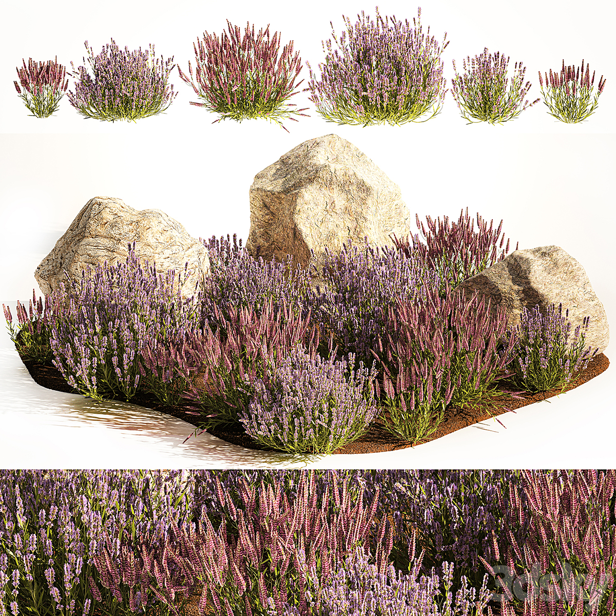 A set of lavender bushes for the garden and alpine slide, boulder, stone, catnip, sage, wild flowers. 1191