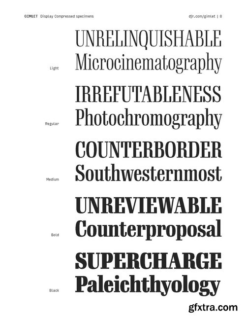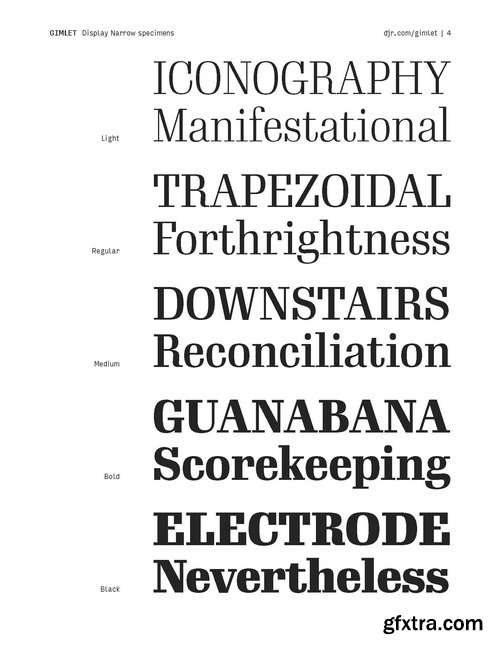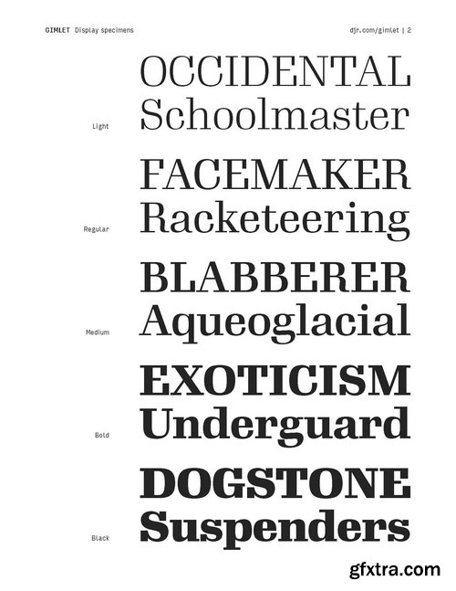 - Gimlet draws its inspiration from Georg Trump’s 1938 typeface, Schadow. At the behest of Nick Sherman, I reimagined the oddball serif as an energetic contemporary workhorse, complete with three optical sizes and a flexible set of widths tailored for responsive layouts. A multifaceted series that speaks with a singular voice, Gimlet is a rare find: a typeface that is as funky as it is functional.
