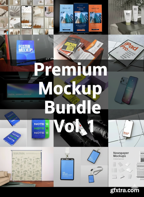 - Premium Mockup Bundle Vol. 1 is a carefully curated collection of high-quality, photorealistic mockups designed to help designers, marketers, and content creators present their work with confidence and impact. This bundle brings together a versatile range of PSD mockups that cover the most common and in-demand design use cases, making it an essential resource for modern creative workflows.