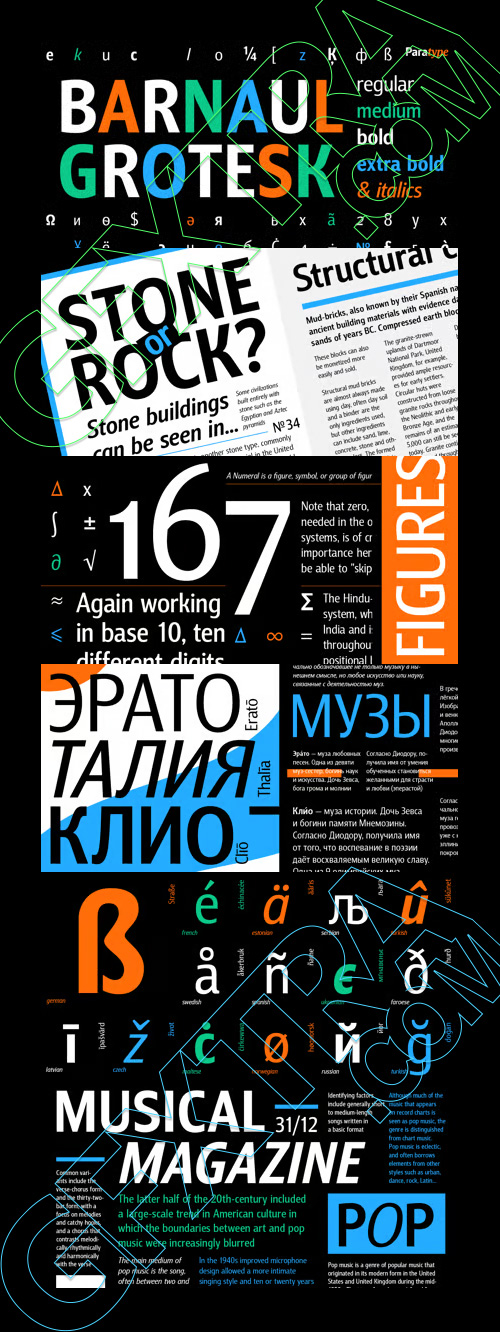 - A text sans serif type family of 8 styles was designed by Natalia Vasilyeva and released by ParaType in 2007. It has narrow proportions, open shapes and can be used in a wide variety of applications — for text setting, for headlines and for display matters.
