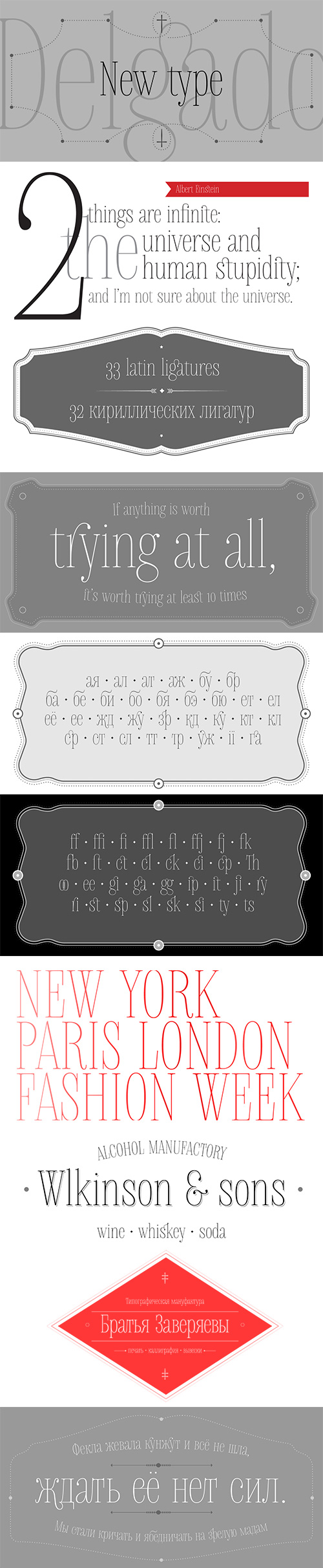 - Delgado is narrow elegant serif font with drops. Delgado is good choice for large journal titles and small amounts of text. This font was made for one of the independent magazine - but it all went wrong and Delgado was freed from the shackles and went to the free swimming. Large number of both Latin and Cyrillic ligatures makes Delgado playful and at the same time, he remains faithful.