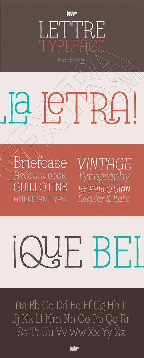 - Lettre is a geometric serif font designed by Pablo Sinn. Thanks to its imperfections, this font looks like it is hand-lettered. Lettre brings back nostalgic feelings of mechanical typewriter characters and recovers the essence of the rustic and natural, what makes it a very modern typeface.
