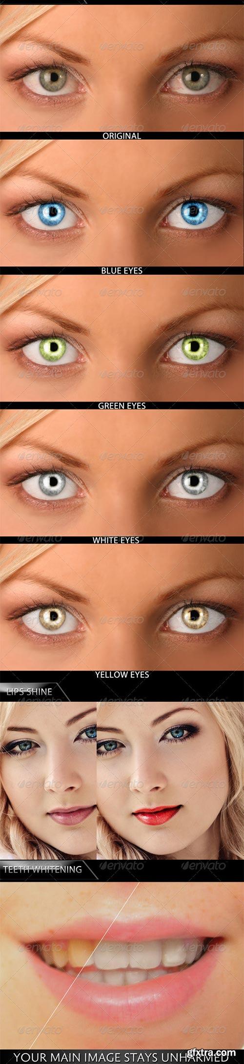 - This package contains properly studied, experimented and mastered actions that can professionally soften the skin, remove blemishes, cross balance, even the overall portrait colors, whiten the eyes, render four iris colors, whiten teeth, do make-ups (pigment, eye shadow, and pancake), and sharpen all the vital details. With this pack, you can professionally edit any type of image in less than 5 minutes without going through the usual photo editing stress. Work faster, complete your projects on-time, and serve your clients better (meet-up deadlines). You will love this package? try it and see!