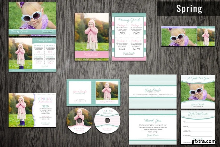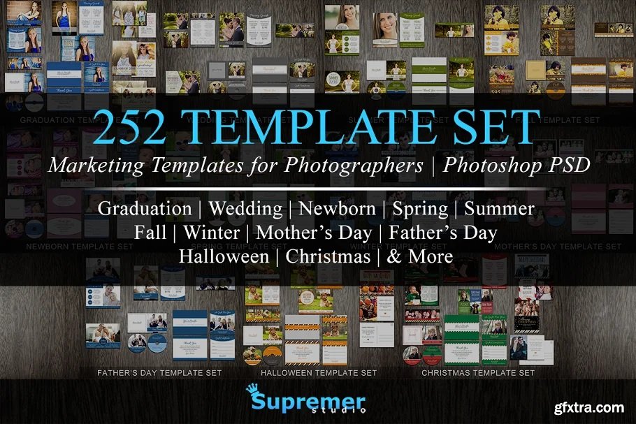 This photography marketing set includes 252 Photoshop templates which are perfect for marketing your photography business. These photography templates features many events, holidays, and seasons to use all year round. Templates included are price list, mini sessions, Facebook cover, cd labels, thank you cards, gift certificates, greeting cards, and collage templates. You can easily modify the pictures, colors, text, and more using Photoshop. If you want more details about this product then feel free to send me a message.