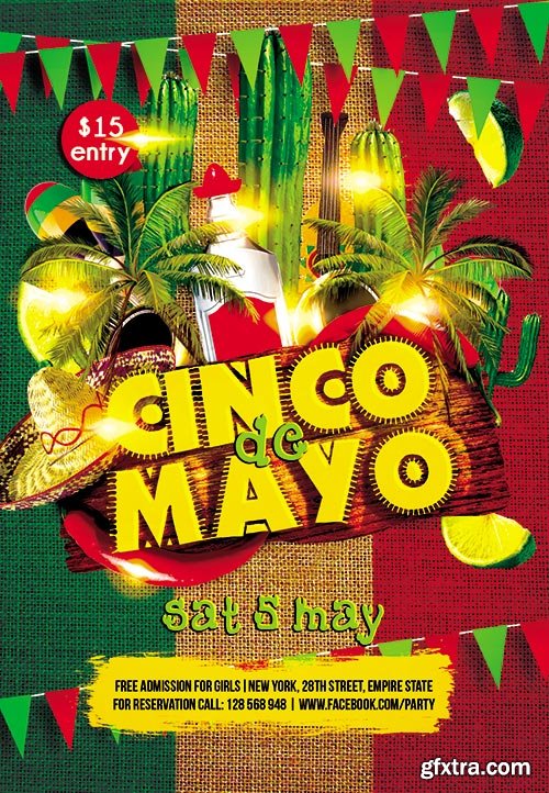 Cinco De Mayo Flyer PSD Template + FB Cover