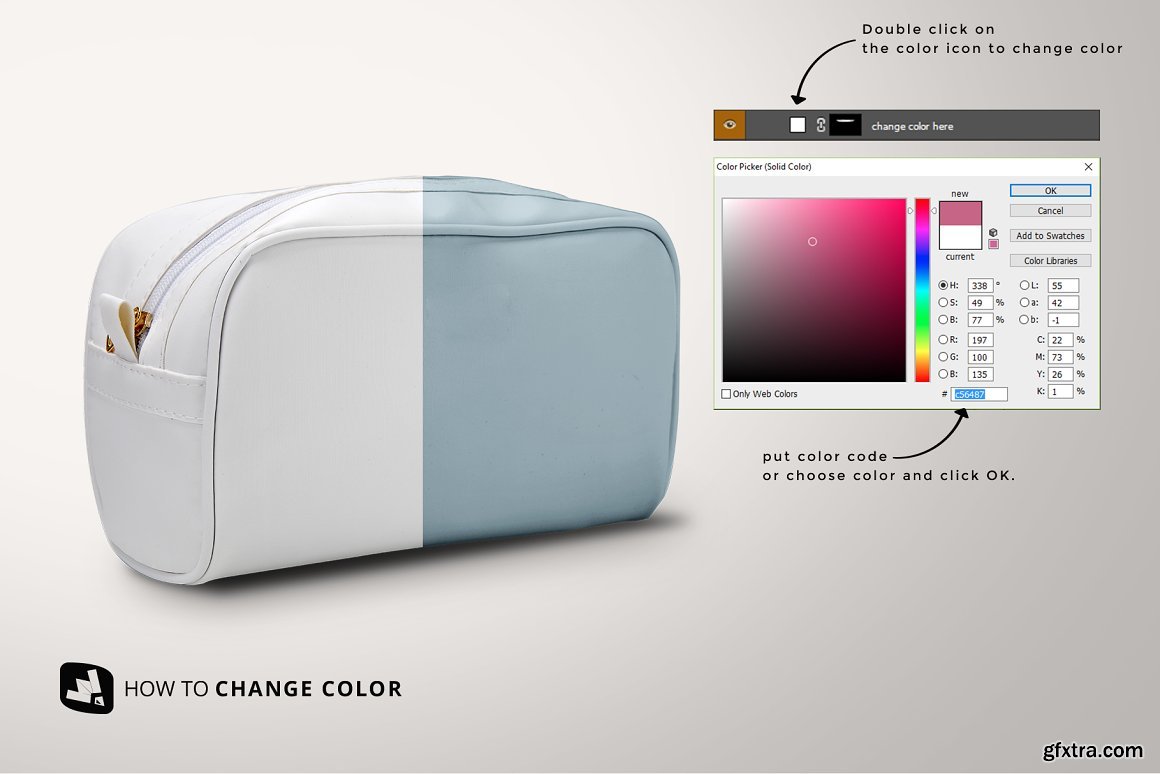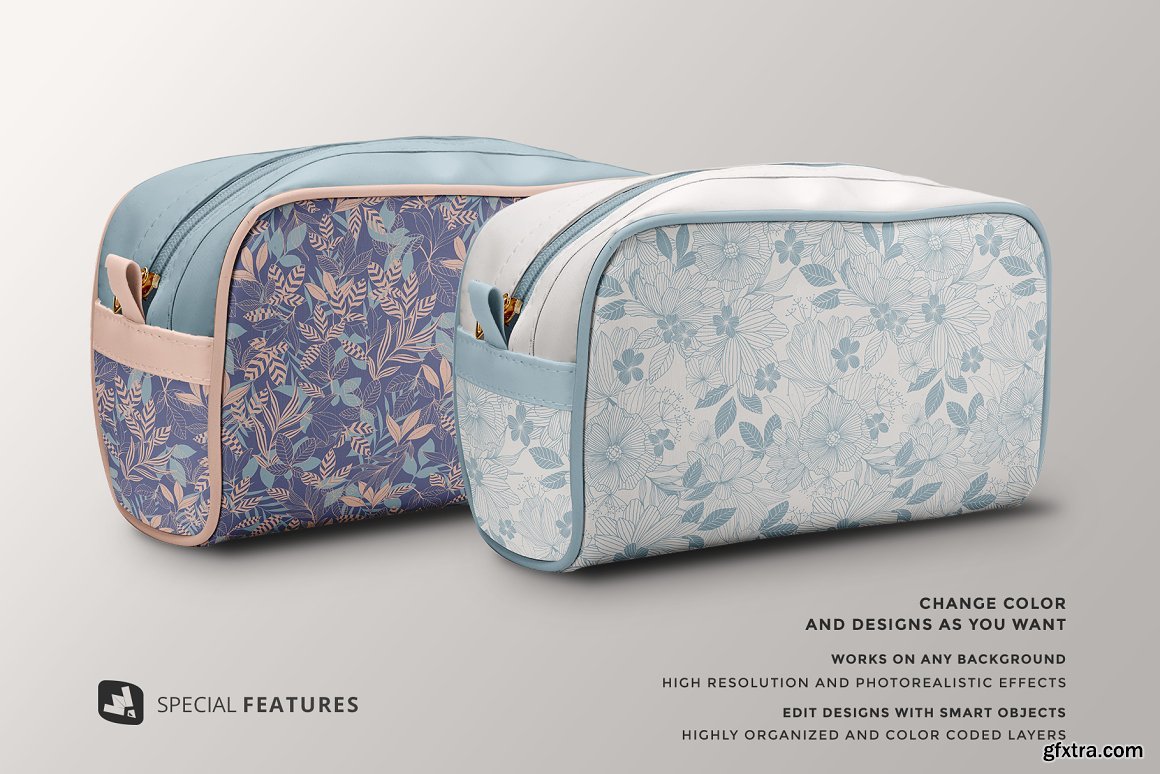 CreativeMarket - Front View Travel Makeup Bag Mockup 5331147
