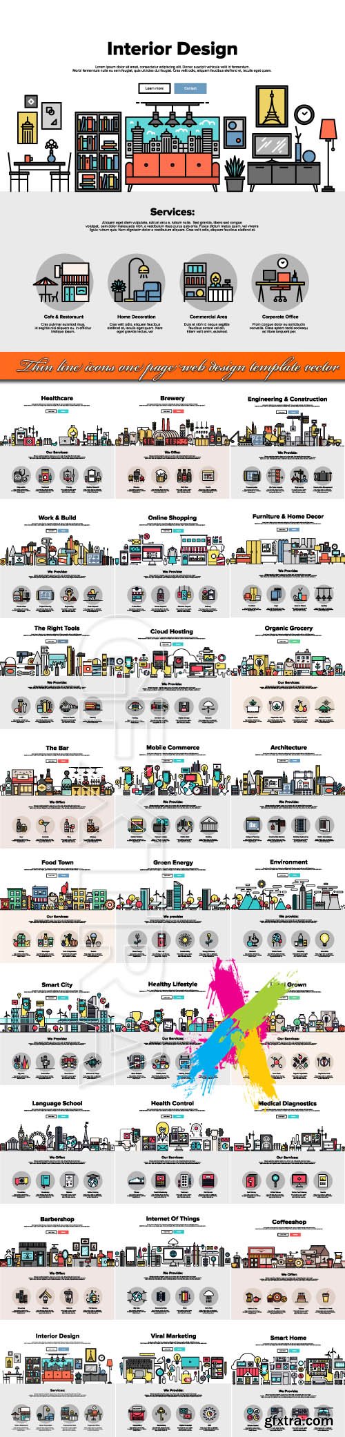 Thin line icons one page web design template vector