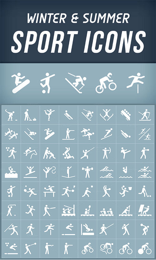 - Icon collection of the most common summer and winter sports. The download includes EPS files (Illustrator 8.0) that can be opened in all the common vector editors, or in Photoshop if you want to create raster images (like PNG or JPG for instance) in the size you prefer. If there's a sport missing in the collection that you would have needed, please leave a comment or send me a message. Your feedback is highly appreciated!